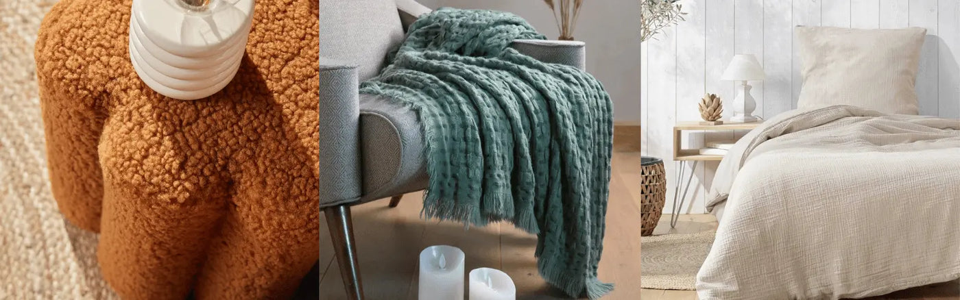 Co może być coś lepszego od komfortowego wypoczynku we własnym domu? Aby dobrze się czuć, wybierz tekstylia do salonu takie jak narzuta na kanapę, koce z frędzlami lub dekoracyjne poduszki.