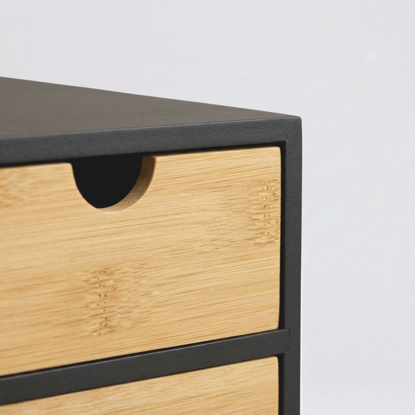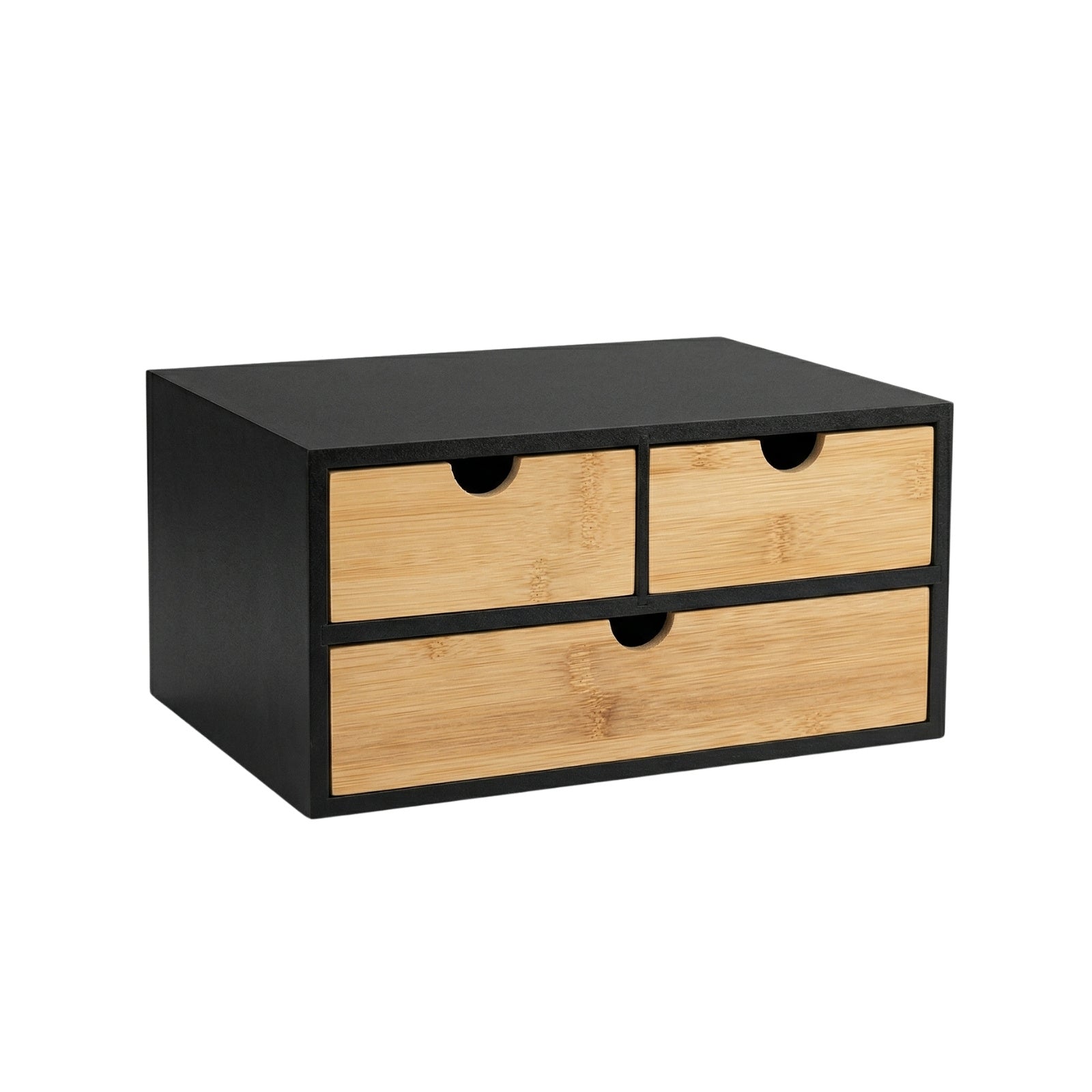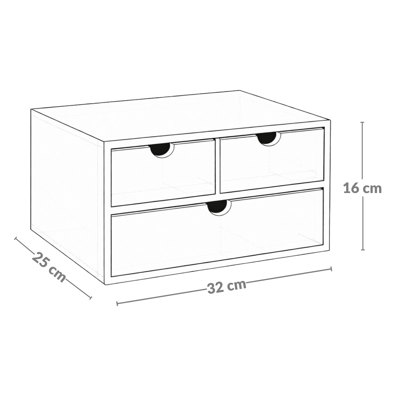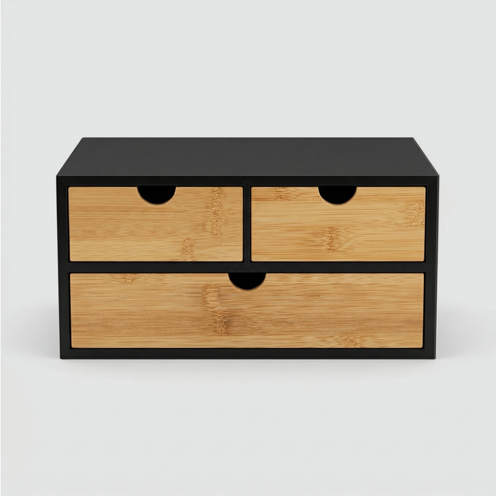 - Funkcjonalne szuflady: Organizer posiada trzy szuflady z płynnym mechanizmem wysuwania, co zapewnia łatwy dostęp do przechowywanych przedmiotów. Wygodne wycięcia na palce ułatwiają otwieranie, co zwiększa komfort użytkowania.