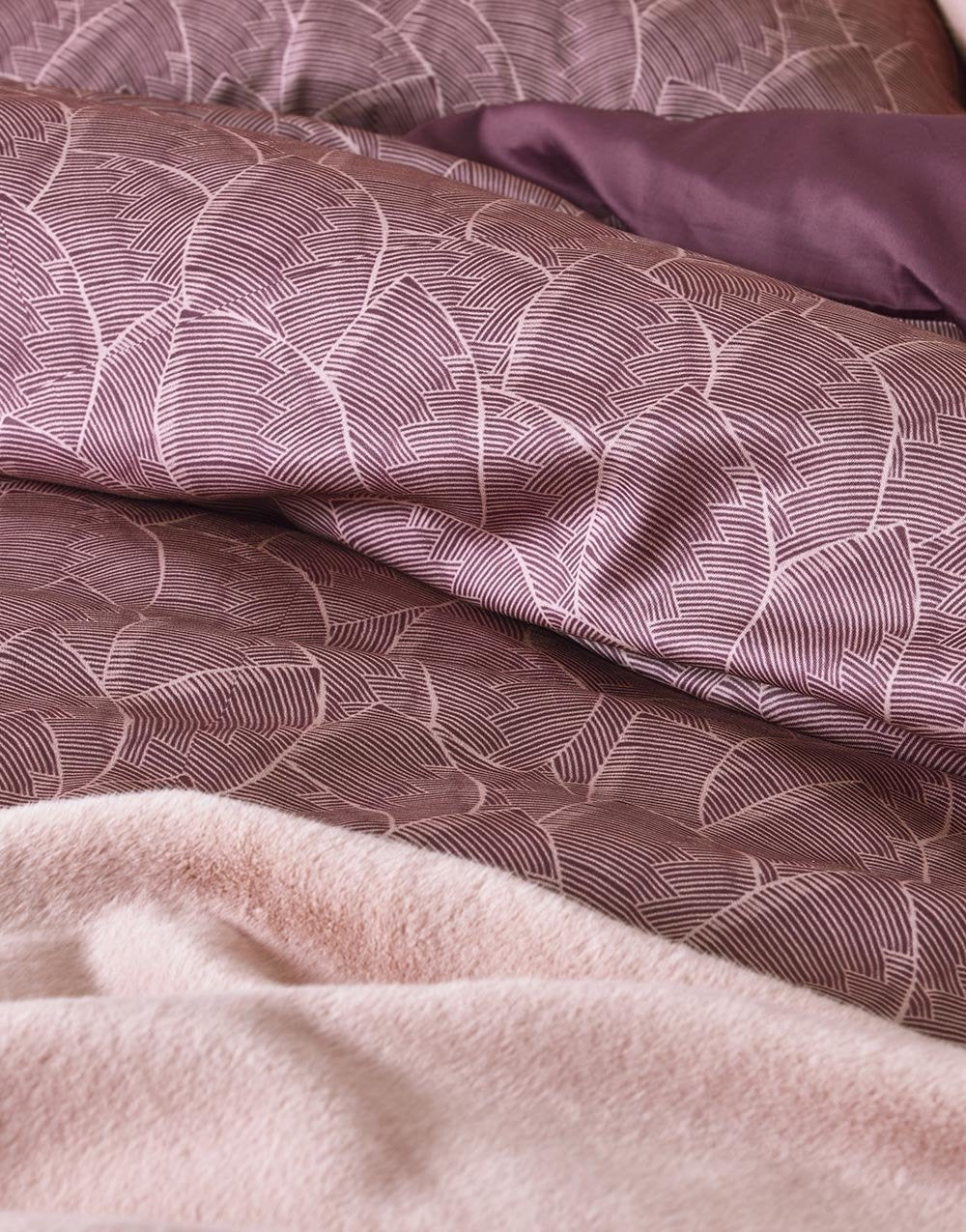 Bawełniany komplet pościeli w modnym kolorze marsala to produkt dla osób, które lubią stawiać na odważne dodatki aranżacyjne. Barwa ta w połączeniu z motywem liści prezentuje się co najmniej niebanalnie.