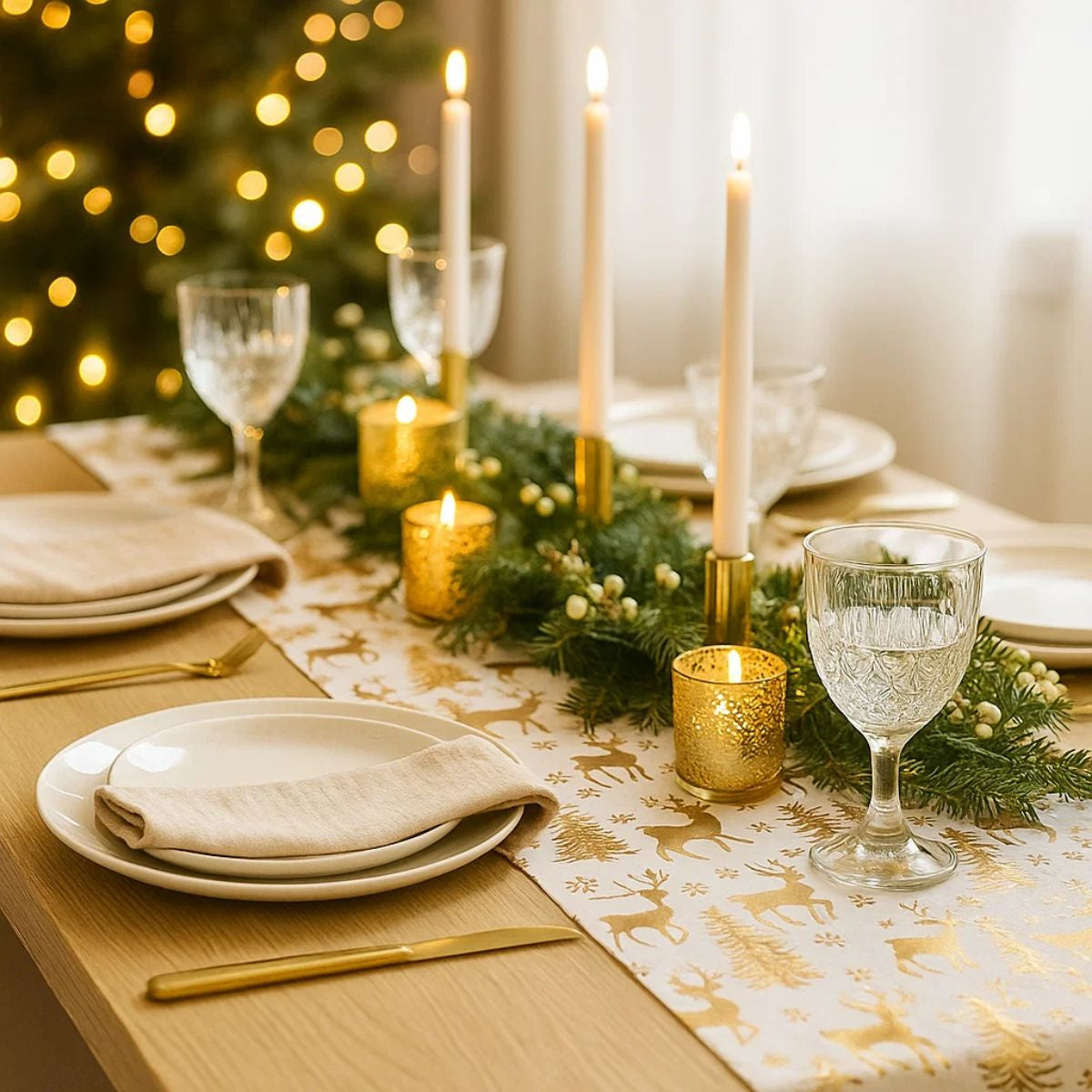 - Stylowy motyw leśny: Bieżnik na stół z unikalnym, świątecznym wzorem leśnym wprowadza do wnętrza przytulną atmosferę, idealną na rodzinne spotkania i świąteczne uroczystości.