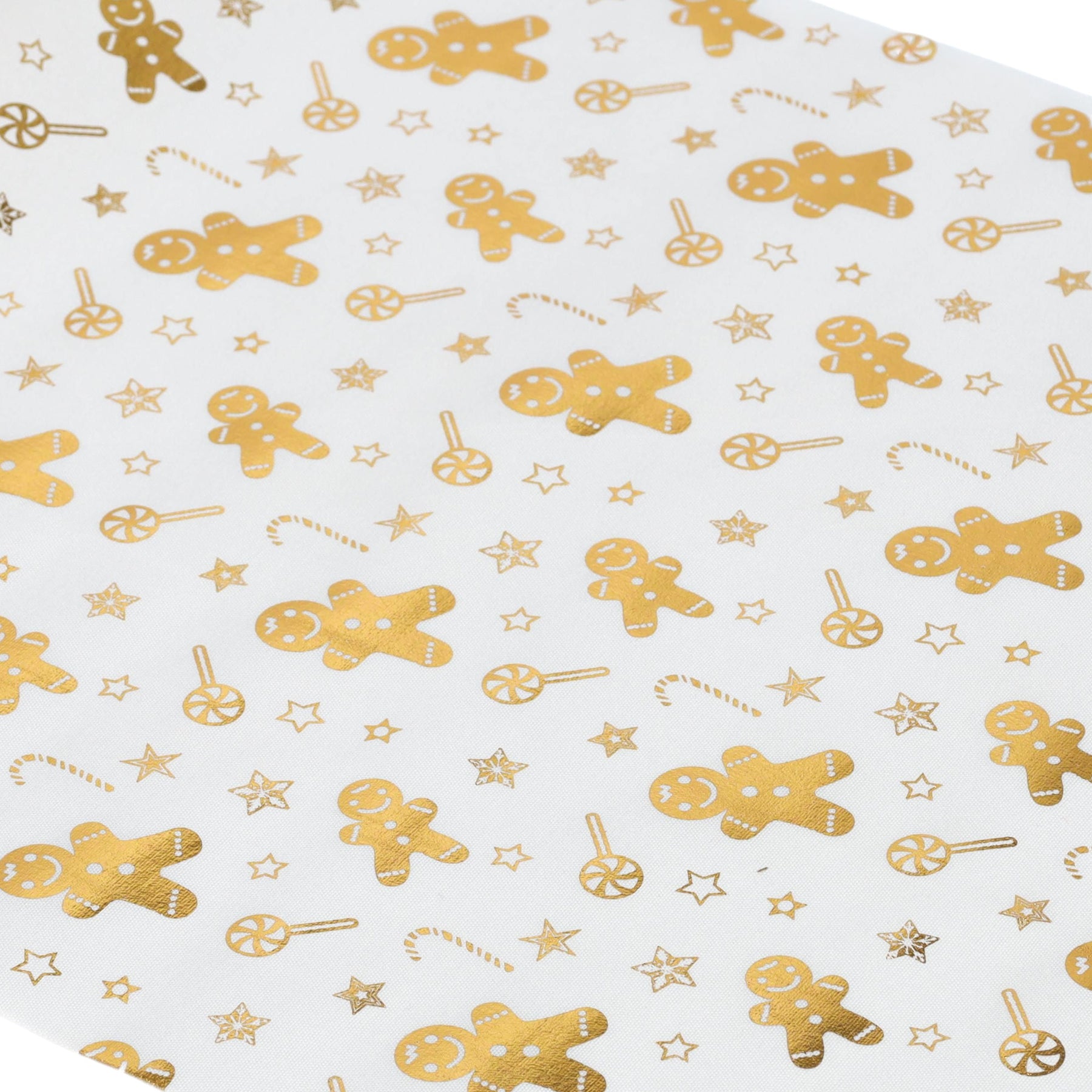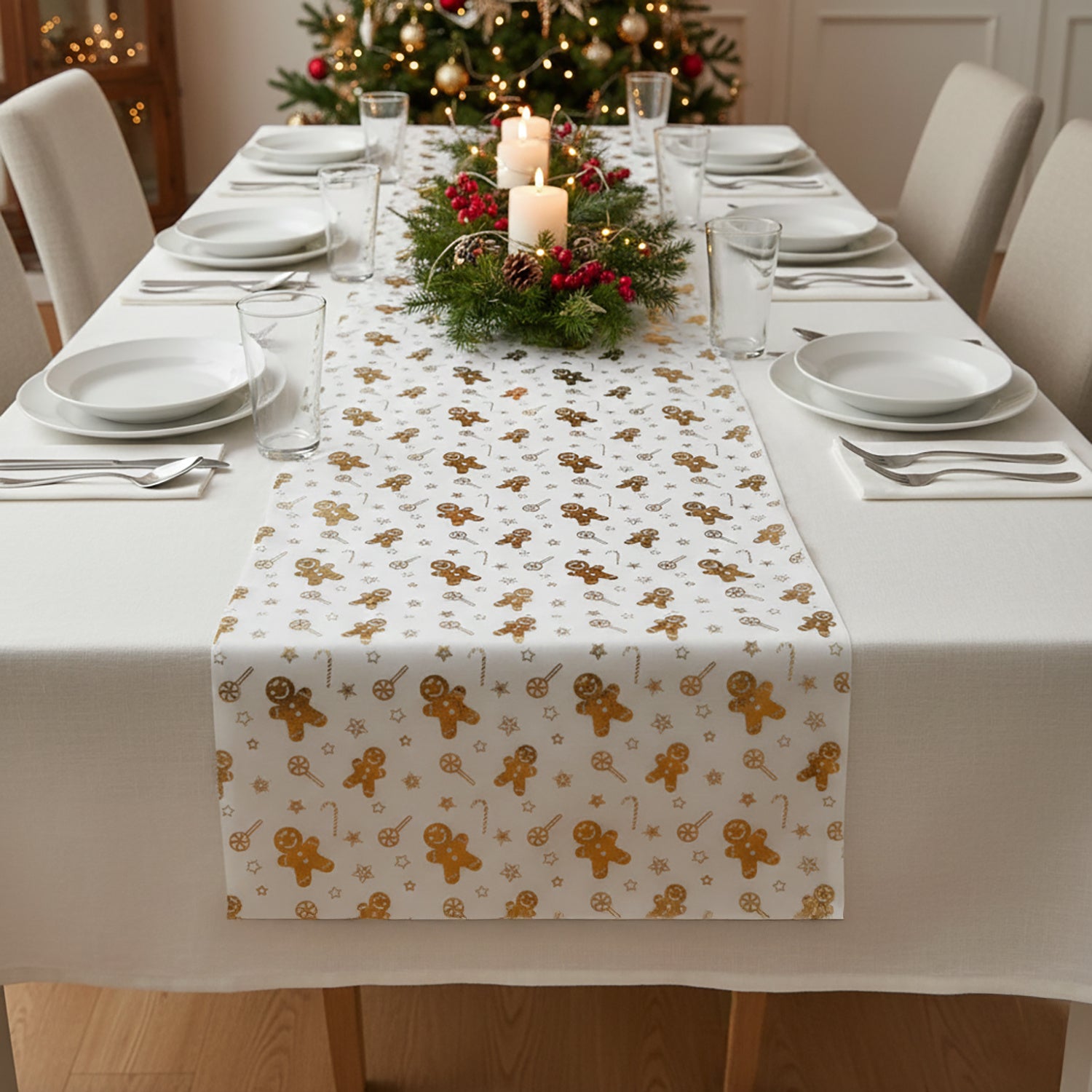 Świąteczny bieżnik ze złotym wzorem pierników - elegancki design i trwały poliester