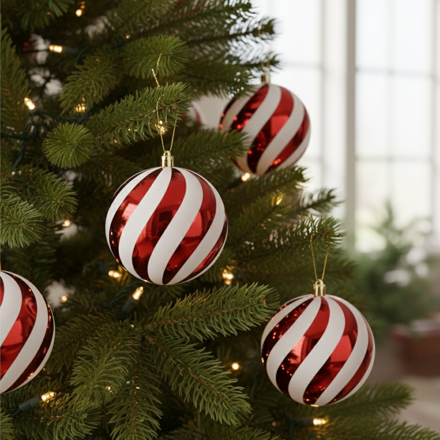 - Stylowy design: Czerwono-białe paski nadają bombkom elegancki i nowoczesny wygląd, który doskonale wpisuje się w świąteczny klimat. Te dekoracje przyciągną wzrok i dodadzą uroku każdej choince.