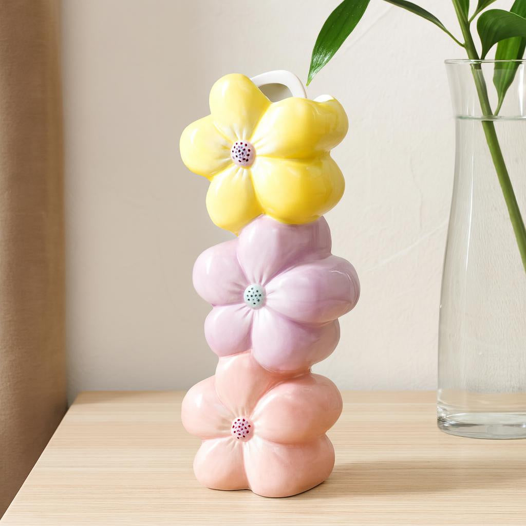 Ceramiczny wazon dekoracyjny BLOMMA z unikalnym designem kwiatów - Oryginalny kształt trzech nałożonych na siebie kwiatów, który doda świeżości każdemu wnętrzu