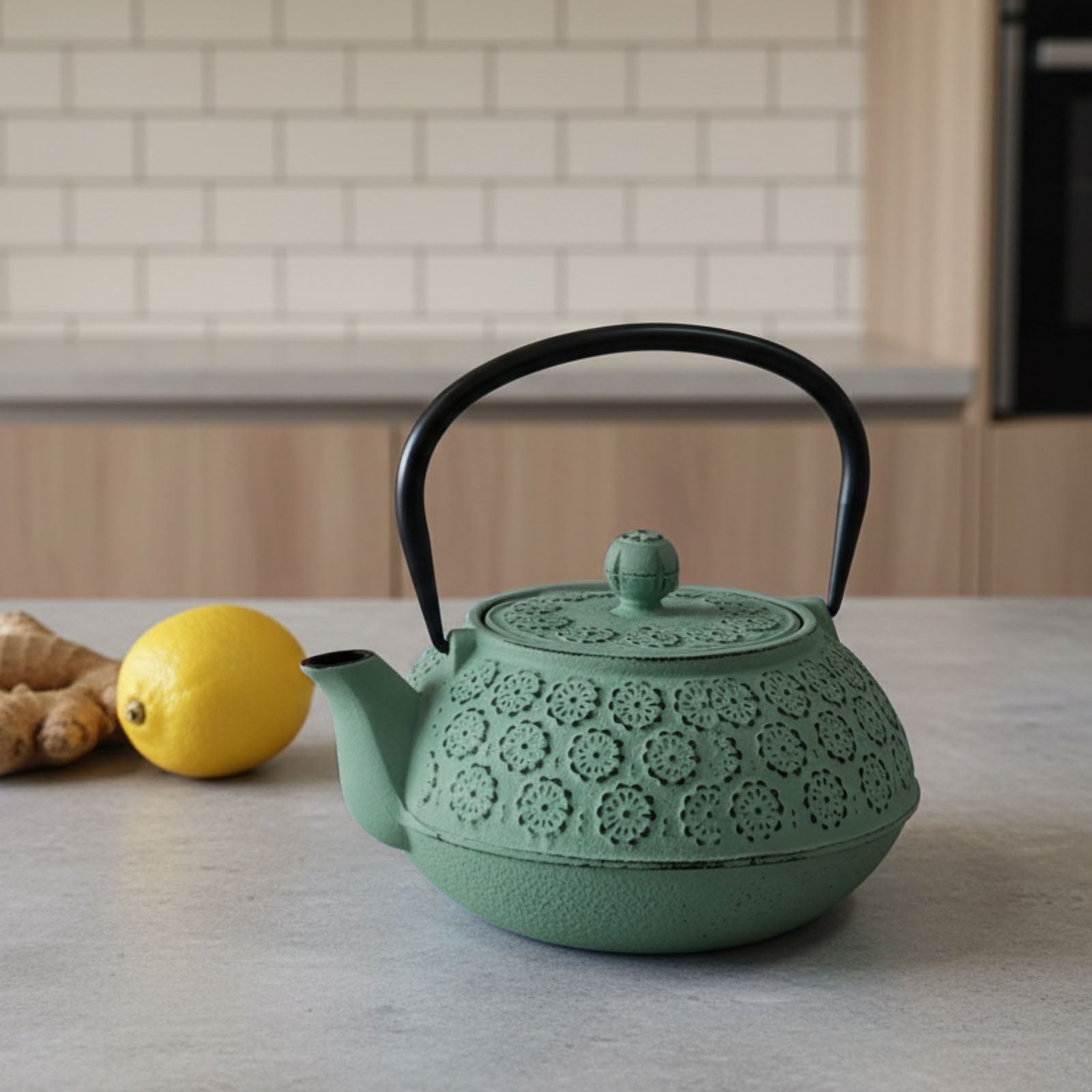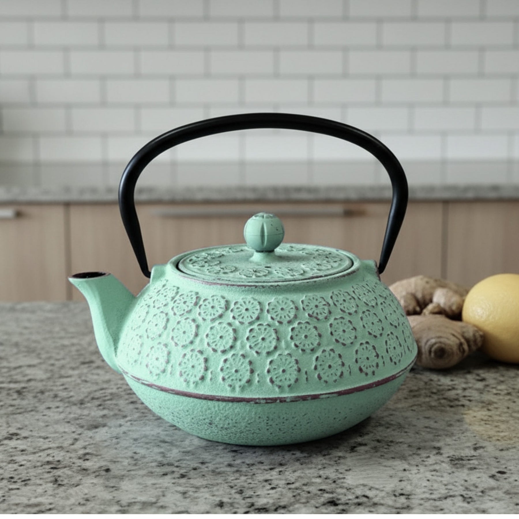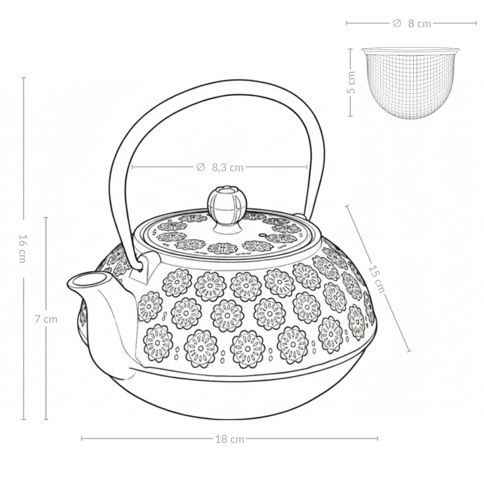 - Wysoka jakość materiałów: Wykonany z żeliwa, czajnik zapewnia doskonałe przewodnictwo ciepła, co pozwala na równomierne parzenie herbaty. Emaliowane wnętrze chroni przed rdzą i ułatwia czyszczenie, nie wpływając na smak naparu.