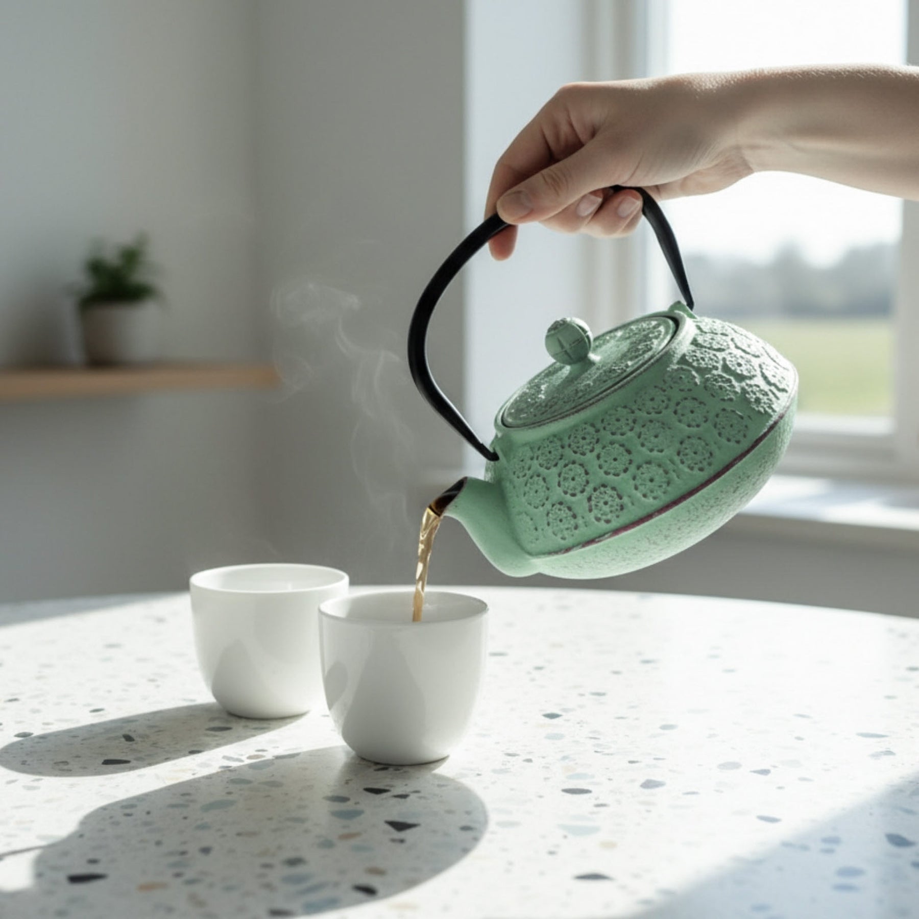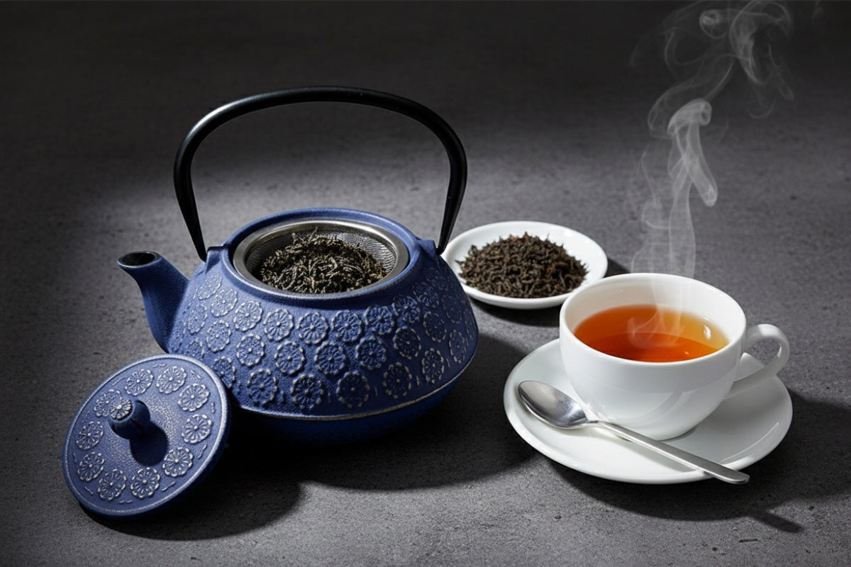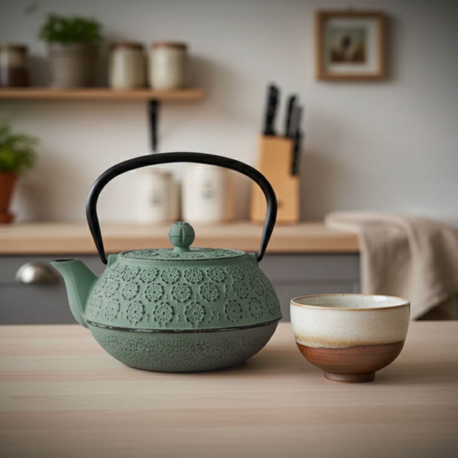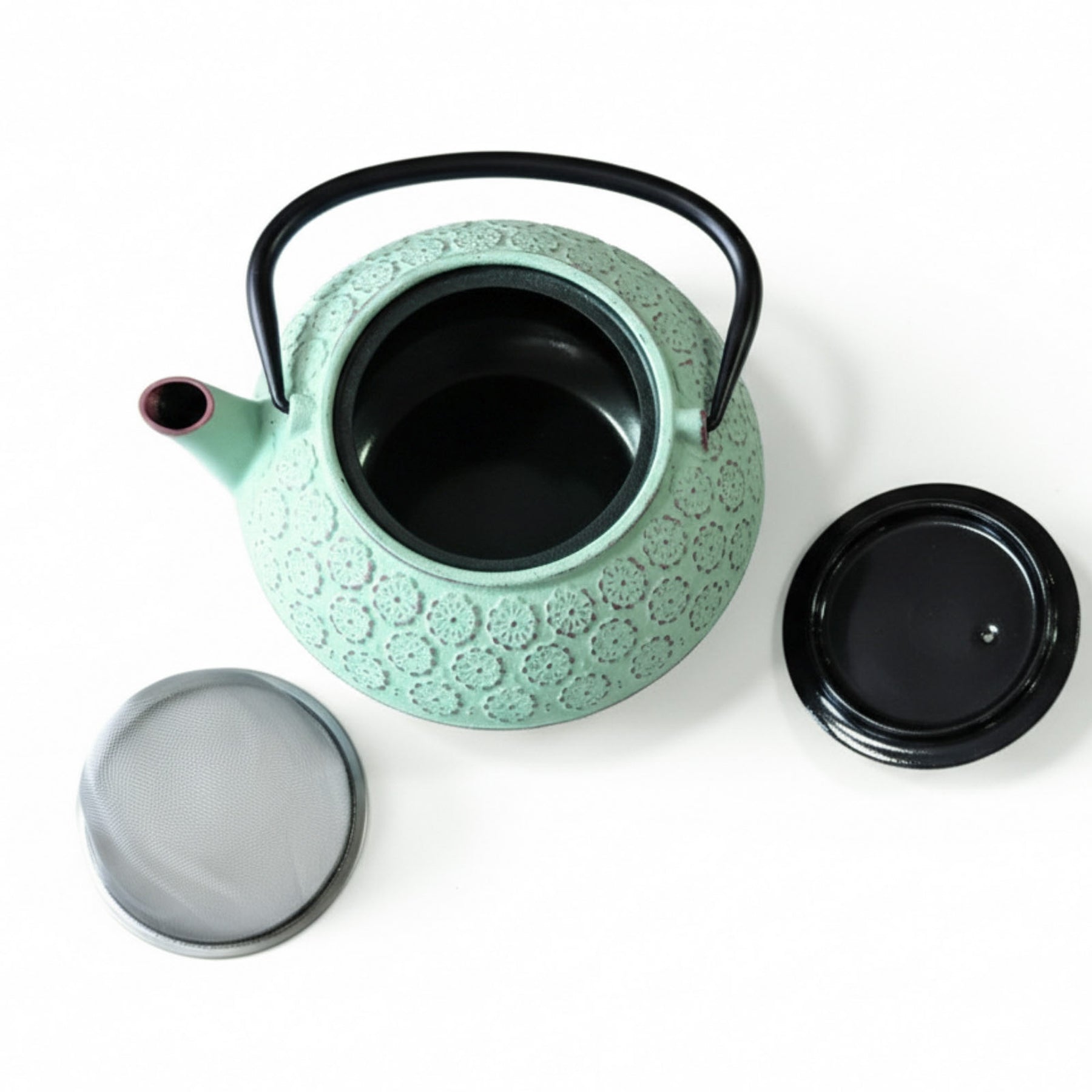 - Wysoka jakość materiałów: Wykonany z żeliwa, czajnik zapewnia doskonałe przewodnictwo ciepła, co pozwala na równomierne parzenie herbaty. Emaliowane wnętrze chroni przed rdzą i ułatwia czyszczenie, nie wpływając na smak naparu.