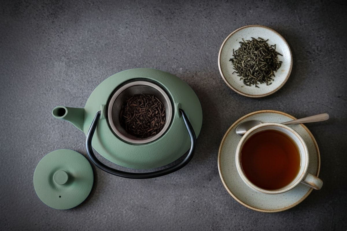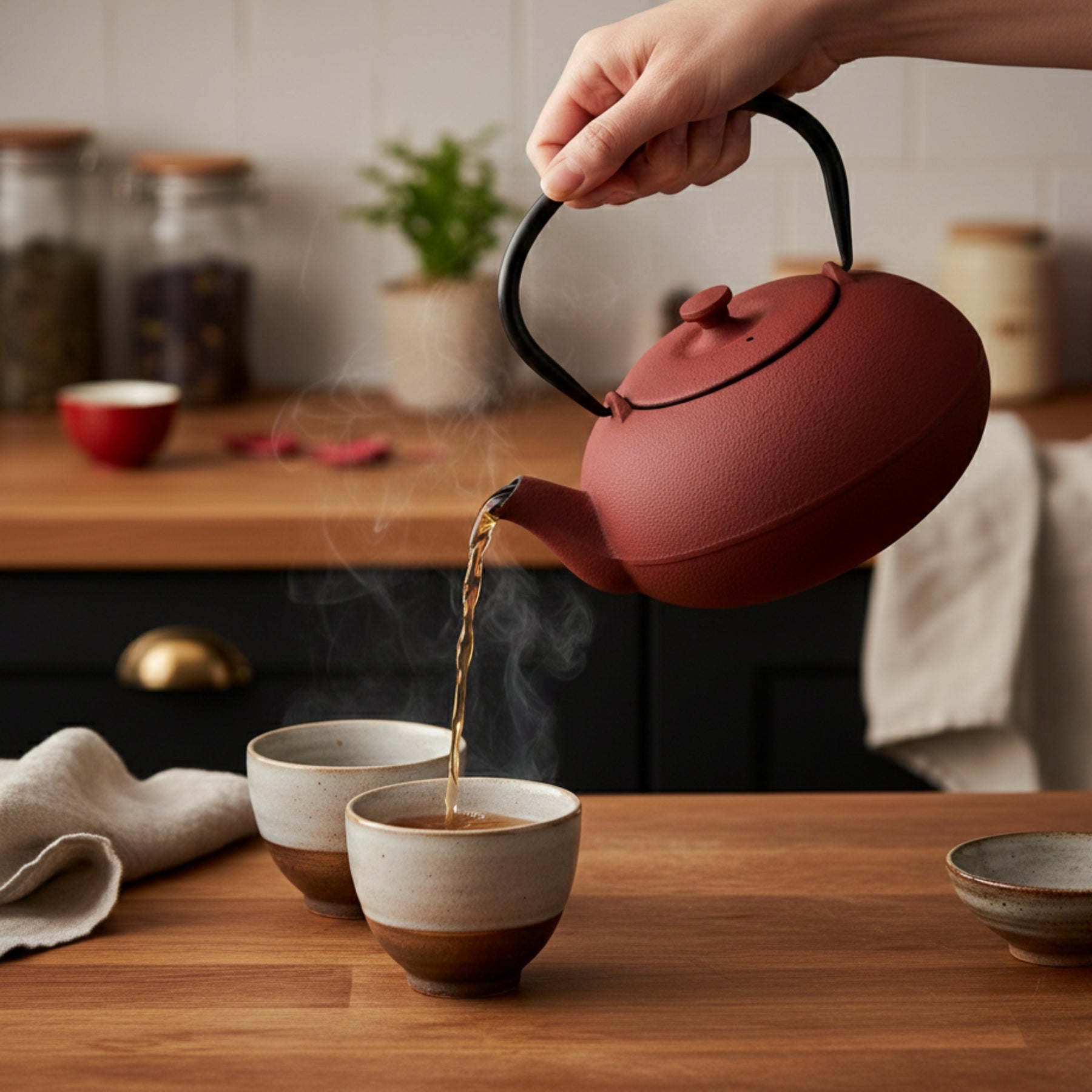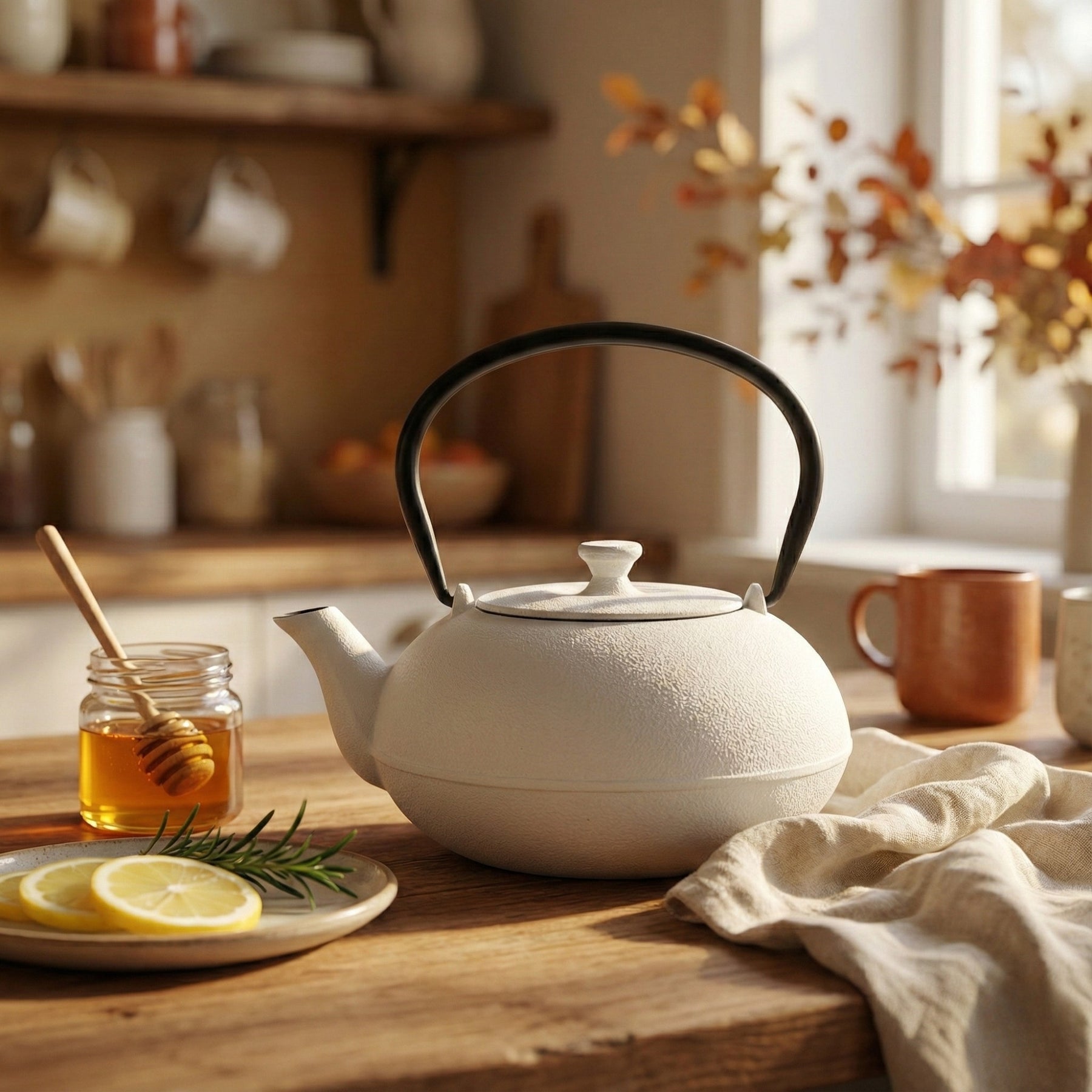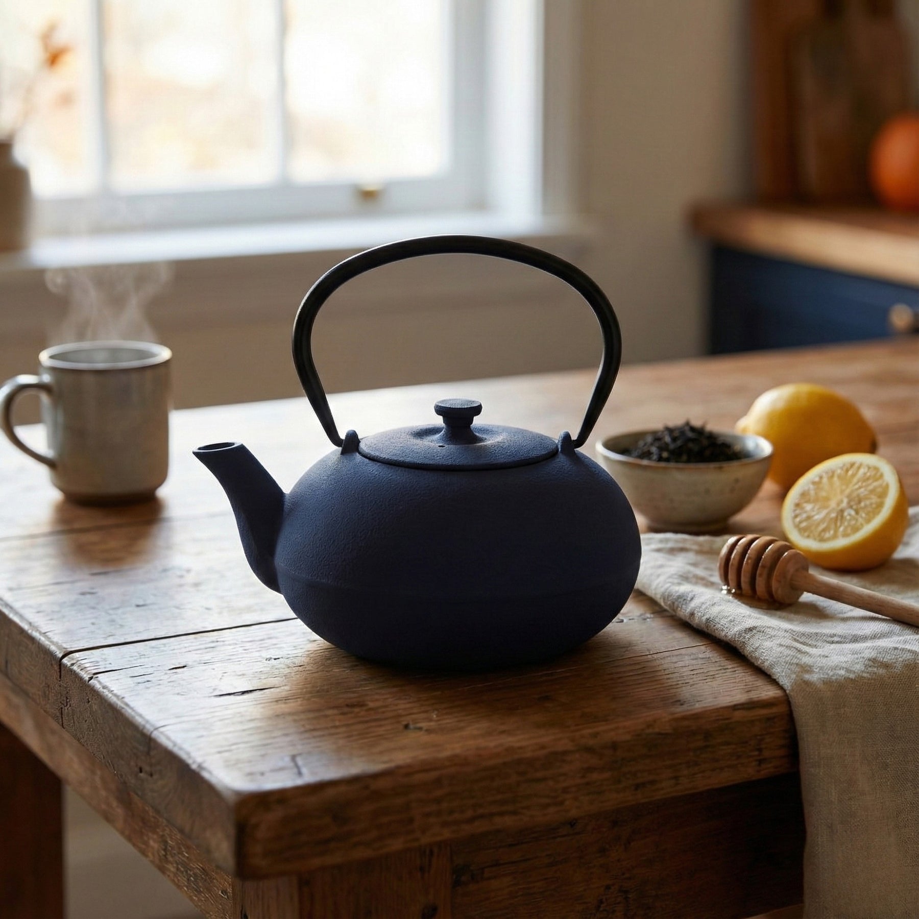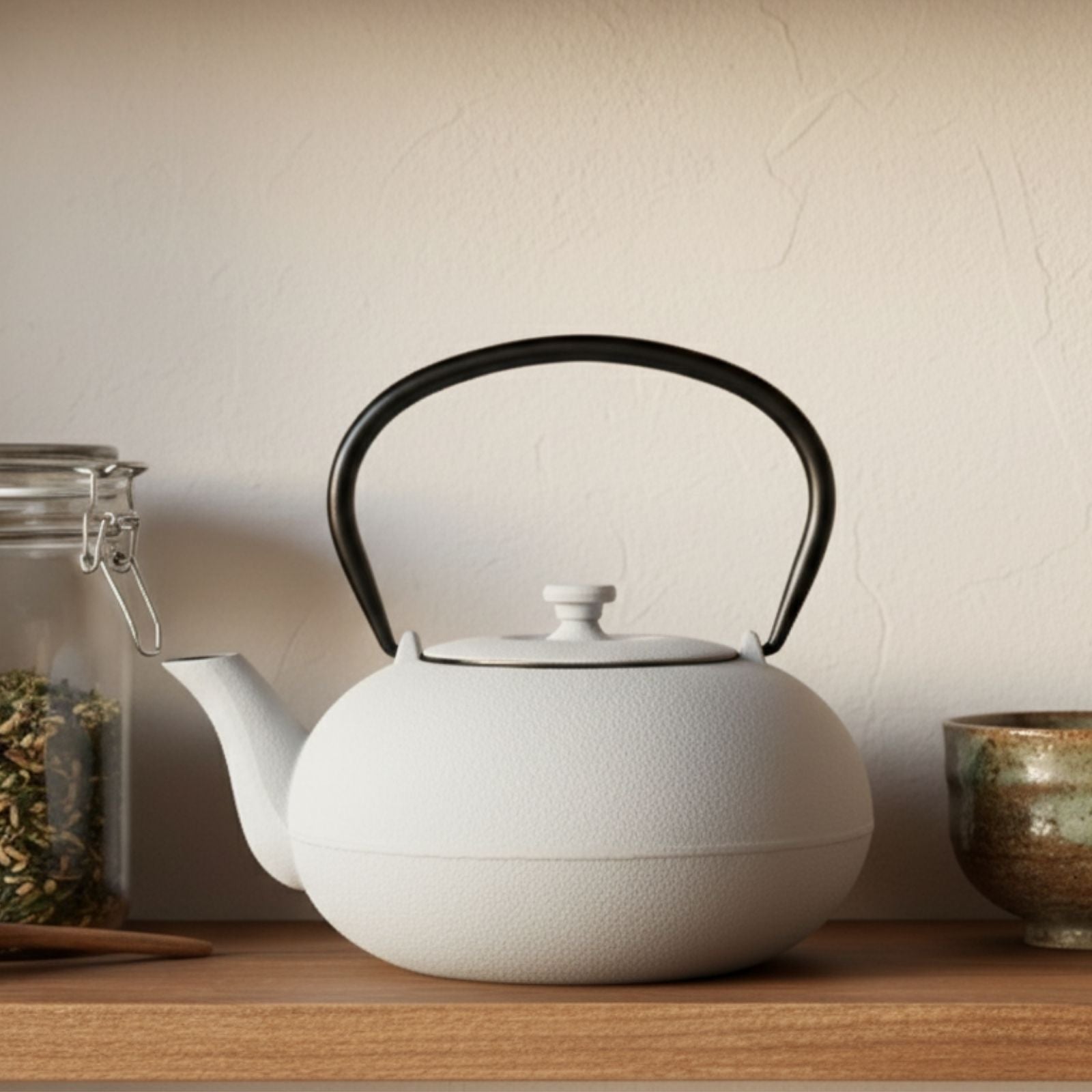 - Żeliwna obudowa + pokrywka: Masywne żeliwo pomaga dłużej utrzymać temperaturę herbaty podczas parzenia i serwowania.
