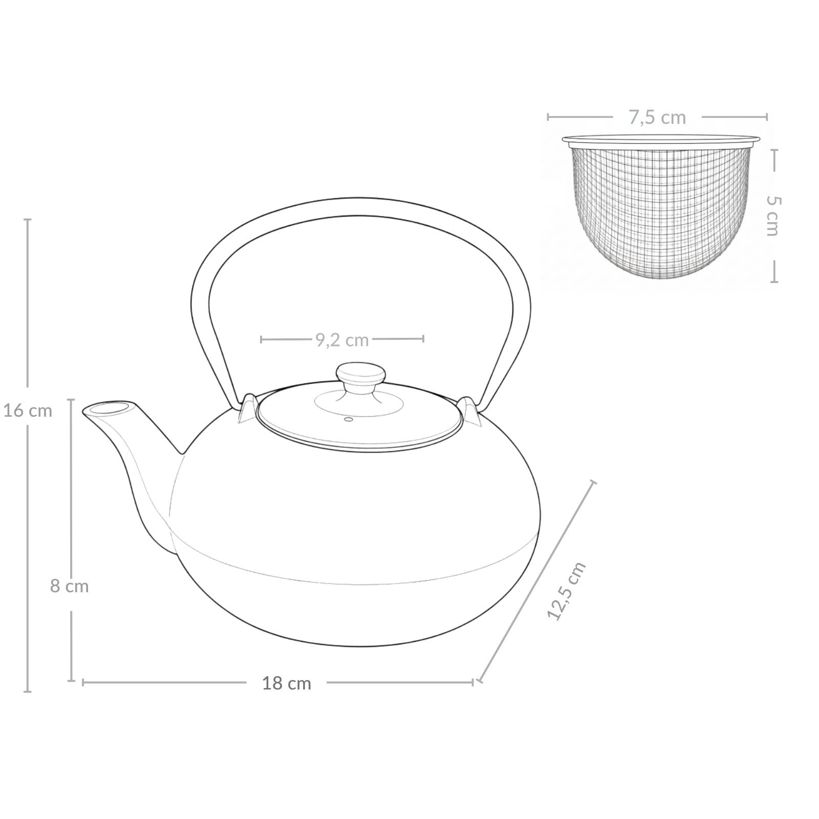 Czajnik żeliwny z zaparzaczem NOMI 800 ml – dzbanek do herbaty z sitkiem (wys. 16 cm)