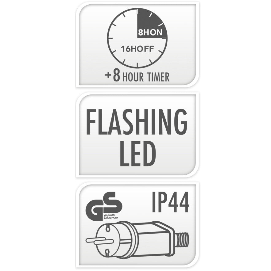 - Funkcja timera: Wbudowany timer umożliwia automatyczne włączanie i wyłączanie dekoracji – 8 godzin pracy i 16 godzin przerwy. To wygodne rozwiązanie, które pozwala zaoszczędzić energię i cieszyć się pięknem dekoracji bez zbędnych zmartwień.