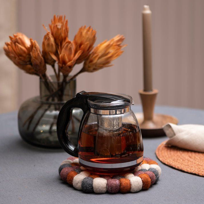 - Stylowy dodatek do wnętrza: Dekoracyjna podkładka z kulek wełnianych PIHLA to idealne połączenie funkcjonalności i estetyki, które wzbogaci każdą przestrzeń. Jej wielokolorowy design sprawia, że stanie się efektownym akcentem na stole.