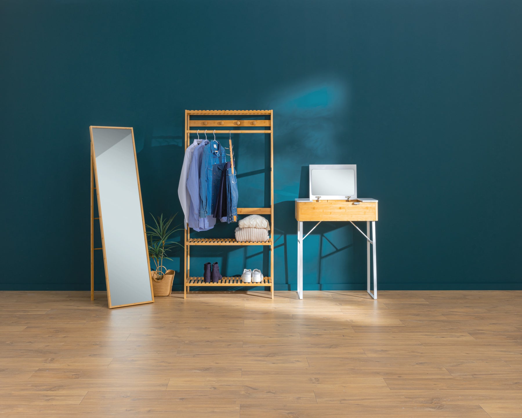 Lustro stojące w bambusowej ramie 41x160 cm z regulowanym kątem nachylenia - elegancka konstrukcja, która wprowadza lekkość i przestronność do wnętrza