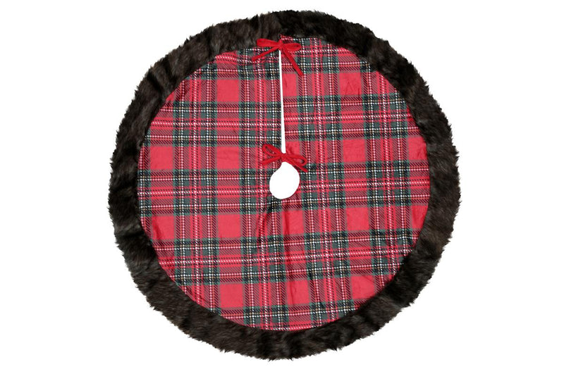 Dywan choinkowy KLAUS z futrzanym wykończeniem w szkocką kratę - stylowy design, który doda świątecznego klimatu każdemu wnętrzu