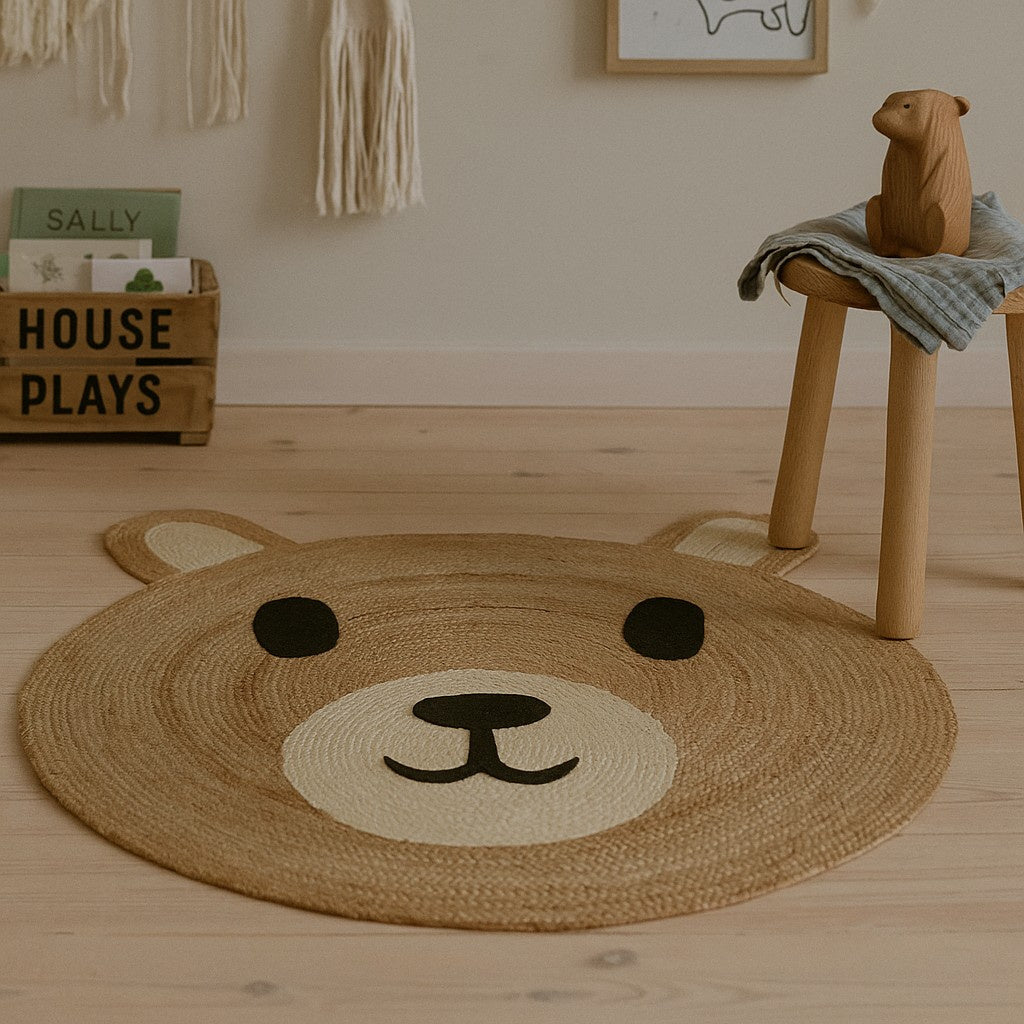 Dywanik dziecięcy w kształcie misia z juty 90 cm - Uroczy design, który wprowadza radość i ciepło do każdego dziecięcego wnętrza