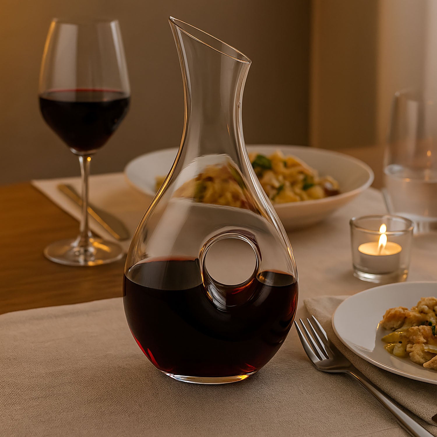 Butelka ma uniwersalny design,dzięki któremu doskonale wpasuje się w otoczenie natury w ogrodzie, jak również biznesowego spotkania w sali konferencyjnej. Ten szklany dzbanek na napoje pomieści aż 1000 ml płynu. Oprócz swoich walorów funkcjonalnych, butelka przez swój praktyczny, wyprofilowany kształt szyjki jestbardzo poręcznai łatwa do chwytania. Dodatkowy uchwyt, znajdujący się w korpusie, ułatwia stabilny chwyt.