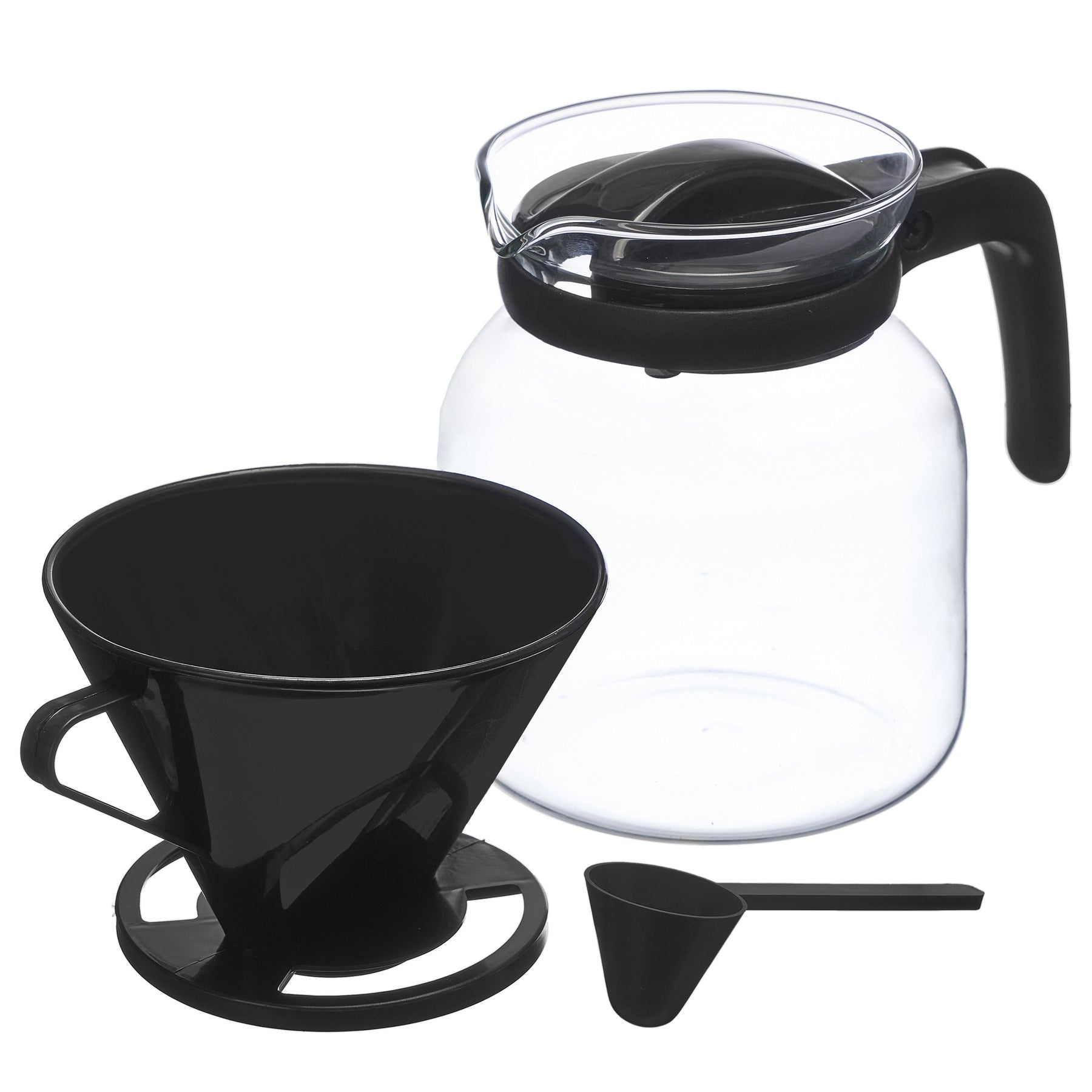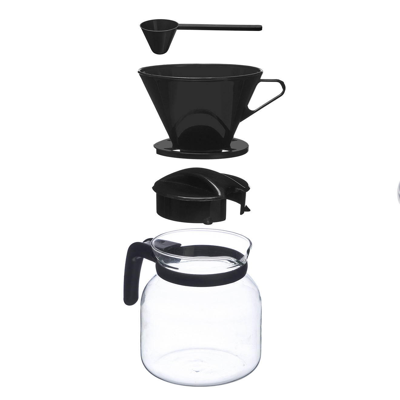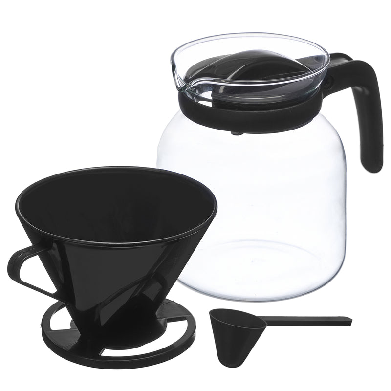 Szklany dzbanek do parzenia kawy z filtrem, miarką do kawy oraz pokrywką