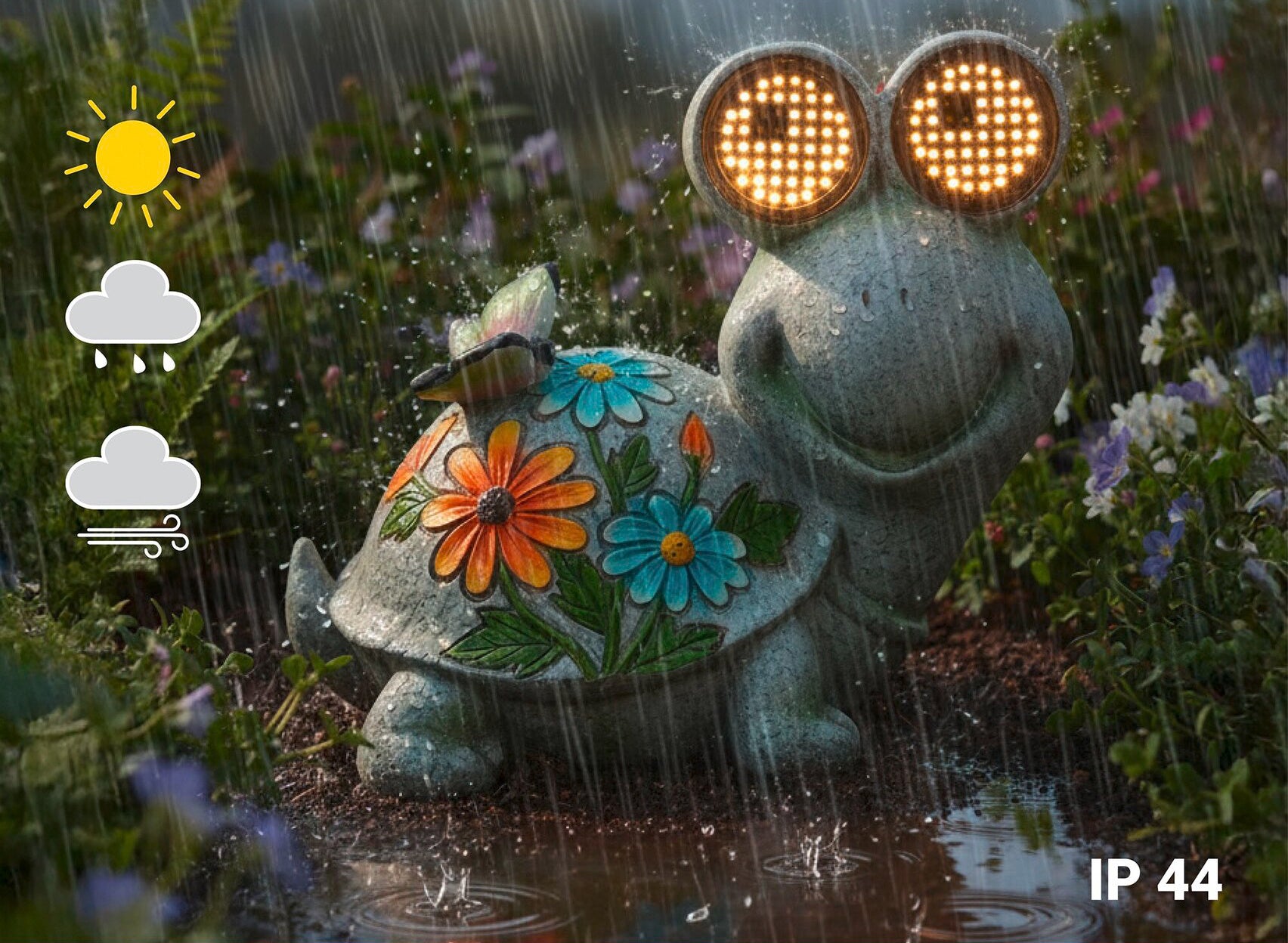 Figurka ogrodowa żółw z LED świecącymi oczami na energię słoneczną - Urokliwy design i odporność na warunki atmosferyczne