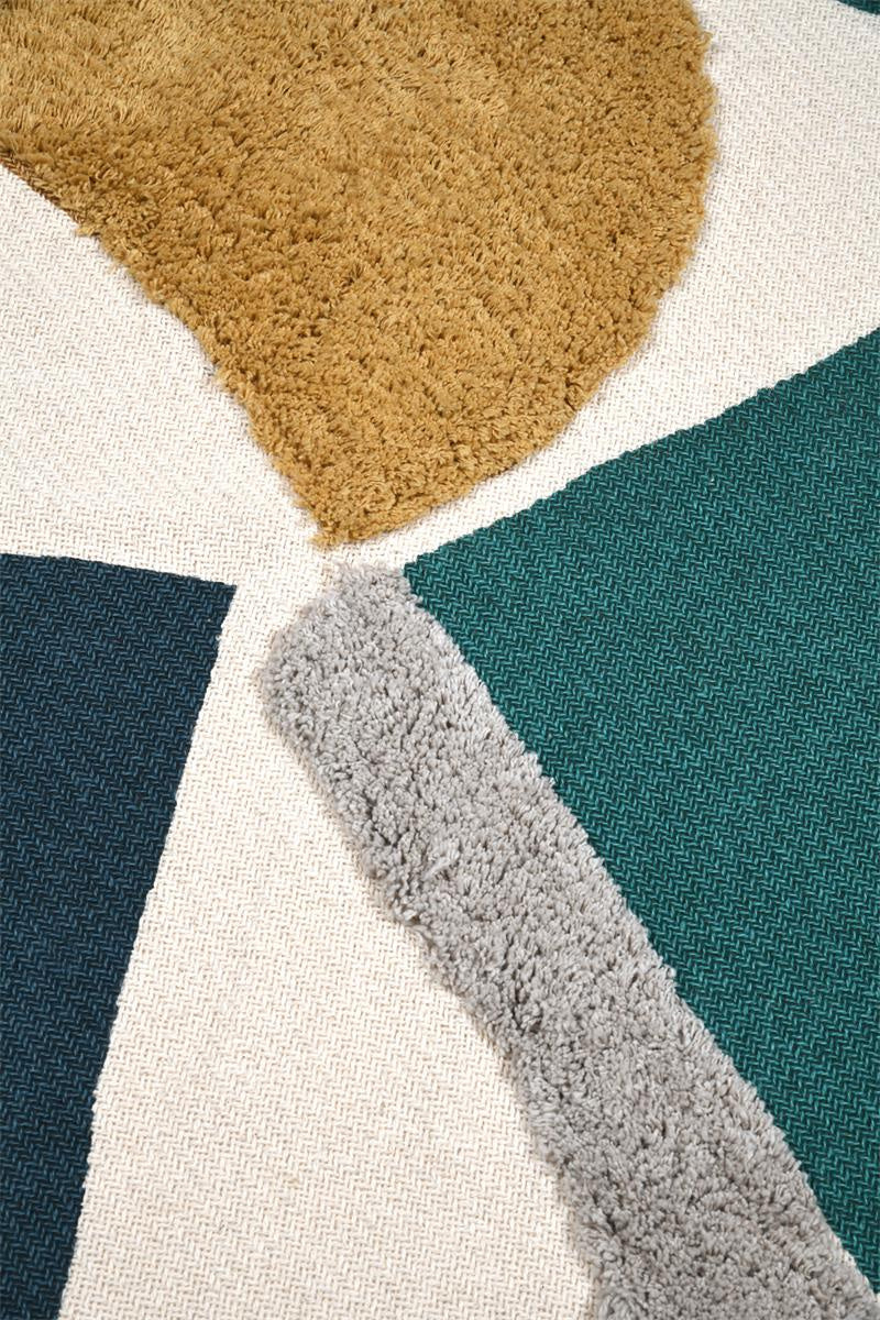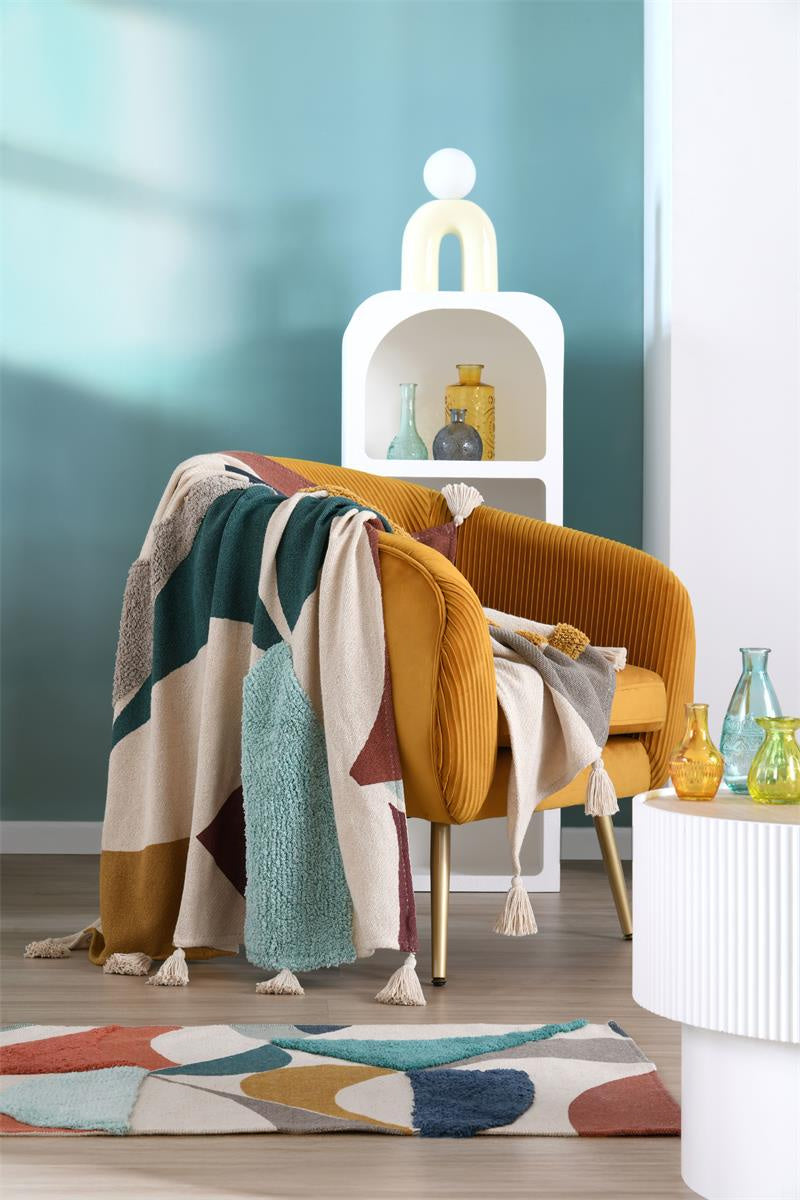 - Kolorowy design: Wielokolorowy wzór z geometrycznymi kształtami dodaje energii i świeżości do każdego pomieszczenia, sprawiając, że narzuta staje się centralnym punktem dekoracyjnym.