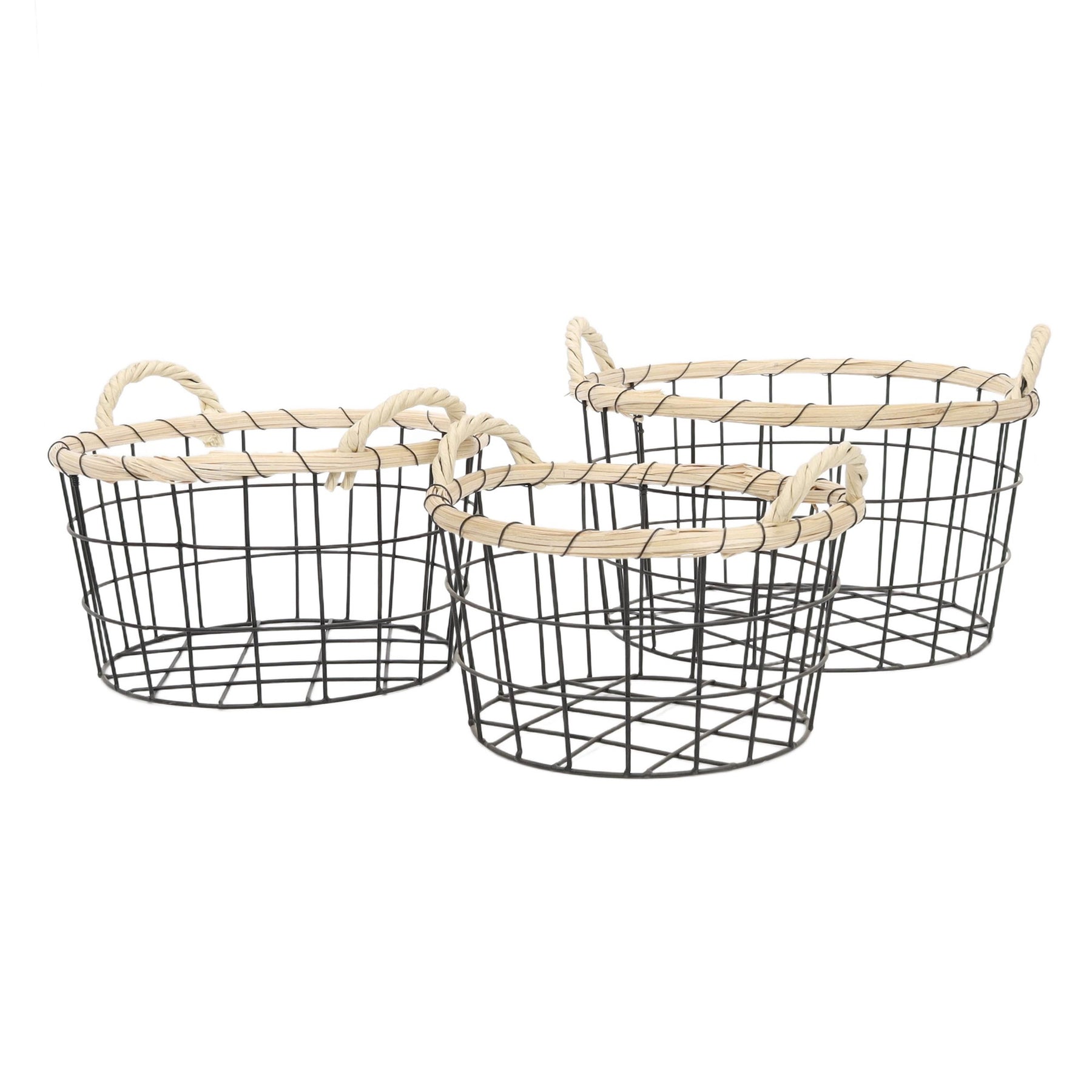Komplet koszy dekoracyjnych to projekt znanej firmy Home Styling Collection. Zestaw składa się z trzech koszyków w różnych rozmiarach. Ich zaletą jest to, że puste koszyki można włożyć jeden w drugi i zaoszczędzić sporo miejsca do przechowywania. Kosz sprawdzi się idealnie w kuchni, salonie, pokoju dzięcięcym czy przedpokoju do przechowywania żywności, zabawek czy różnych gadżetów. Przestrzenie pomiędzy metalową konstrukcją zapewniają przewiew powietrza, co gwarantuje świeżość owoców i warzyw. Kosz wykonany jest z wysokiej jakości metalu. Jego konstrukcja jest solidna, dzięki czemu wytrzyma nawet spory ciężar i posłuży przez dłuższy czas. Wymiary produktu: 36 x 36 x 24 cm.