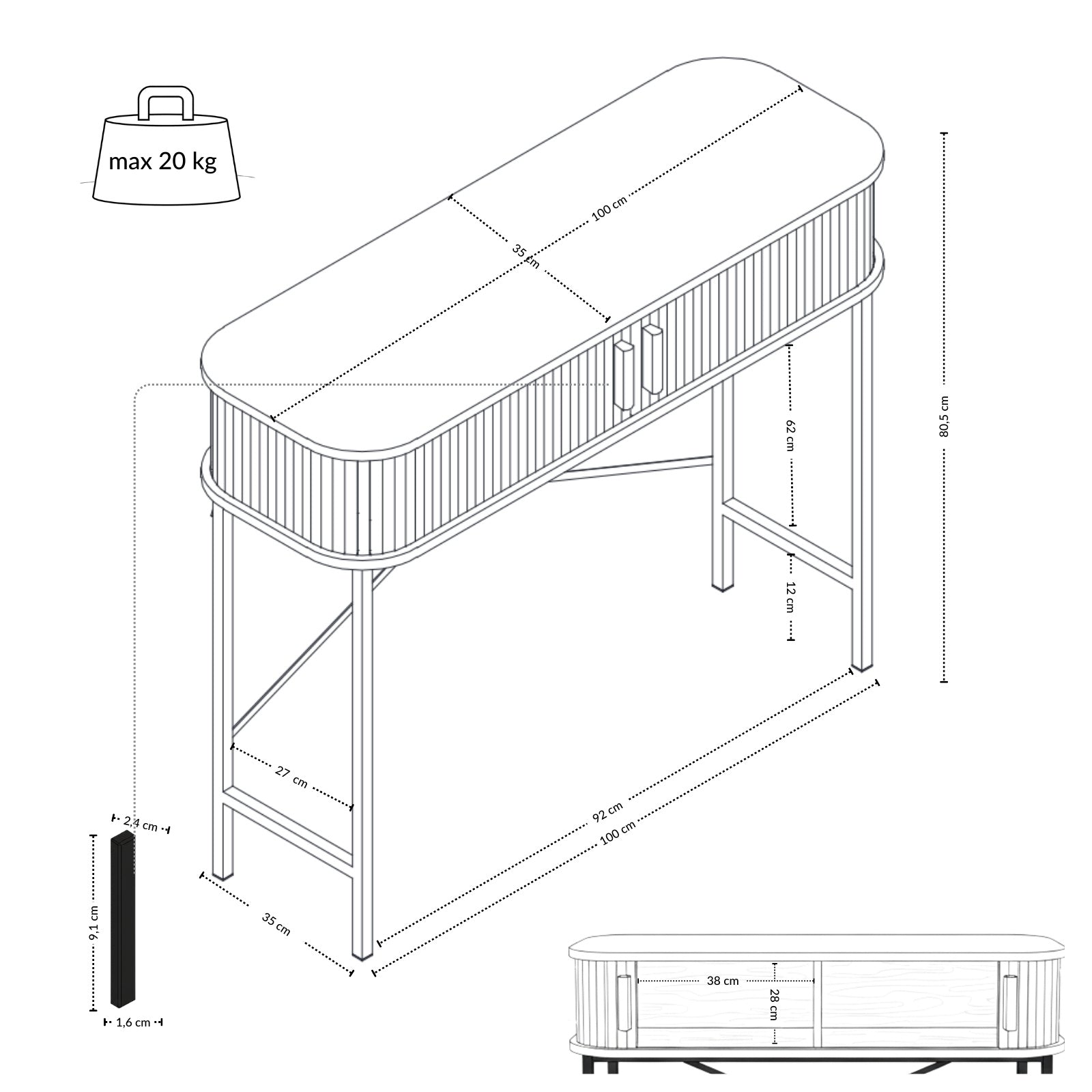 - Specyfikacja i montaż: Wymiary całkowite to 100 x 35 x 80,5 cm (dł. x gł. x wys.). Maksymalne obciążenie łączne: 20 kg (blat: 10 kg). Produkt do samodzielnego montażu z czytelną instrukcją.