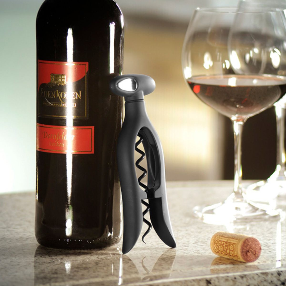 Spirala, produktu niemieckiej marki, została pokryta specjalną powłoką, która sprawia, że z łatwością wkręca się w każdy korek - bez problemu poradzi sobie zarówno z korkami z naturalnego jak i sztucznego tworzywa. Uchwyty w kształcie motylka, działające na zasadzie dźwigni, zapewnią z kolei bezproblemowe wyciąganie korka z butelki. Możesz cieszyć się swoim ulubionym trunkiem bez kruszących się korków i siłowania się nimi.