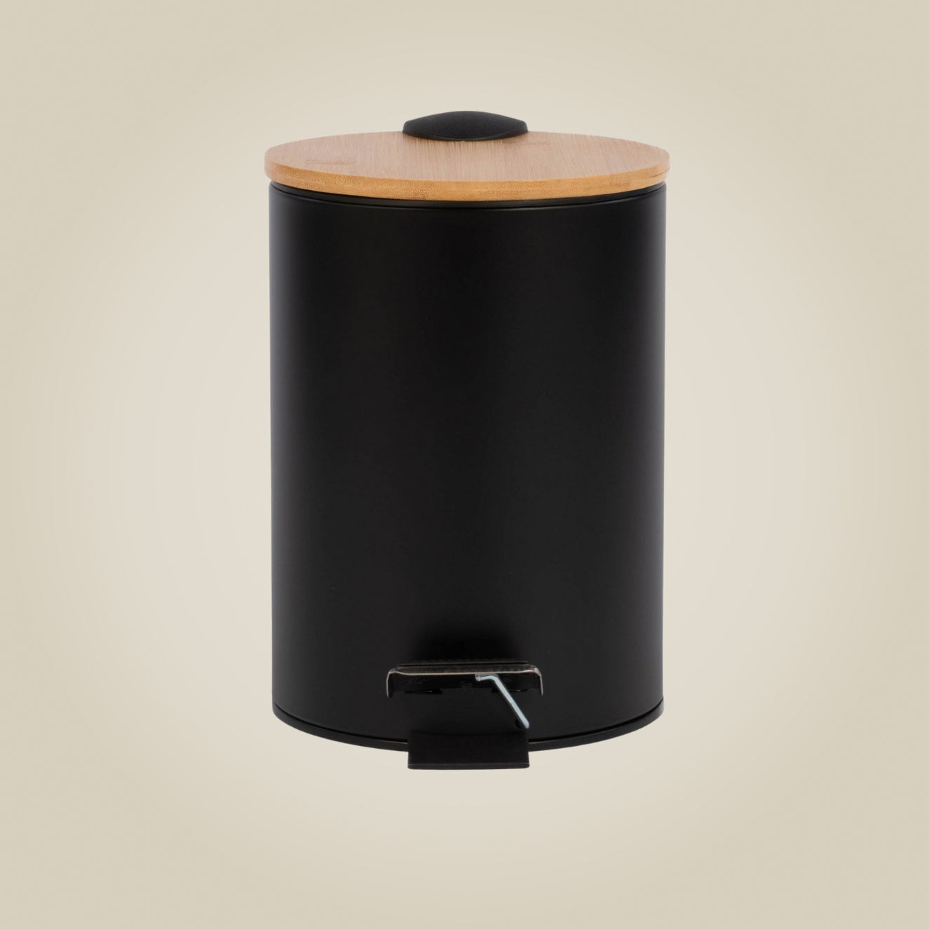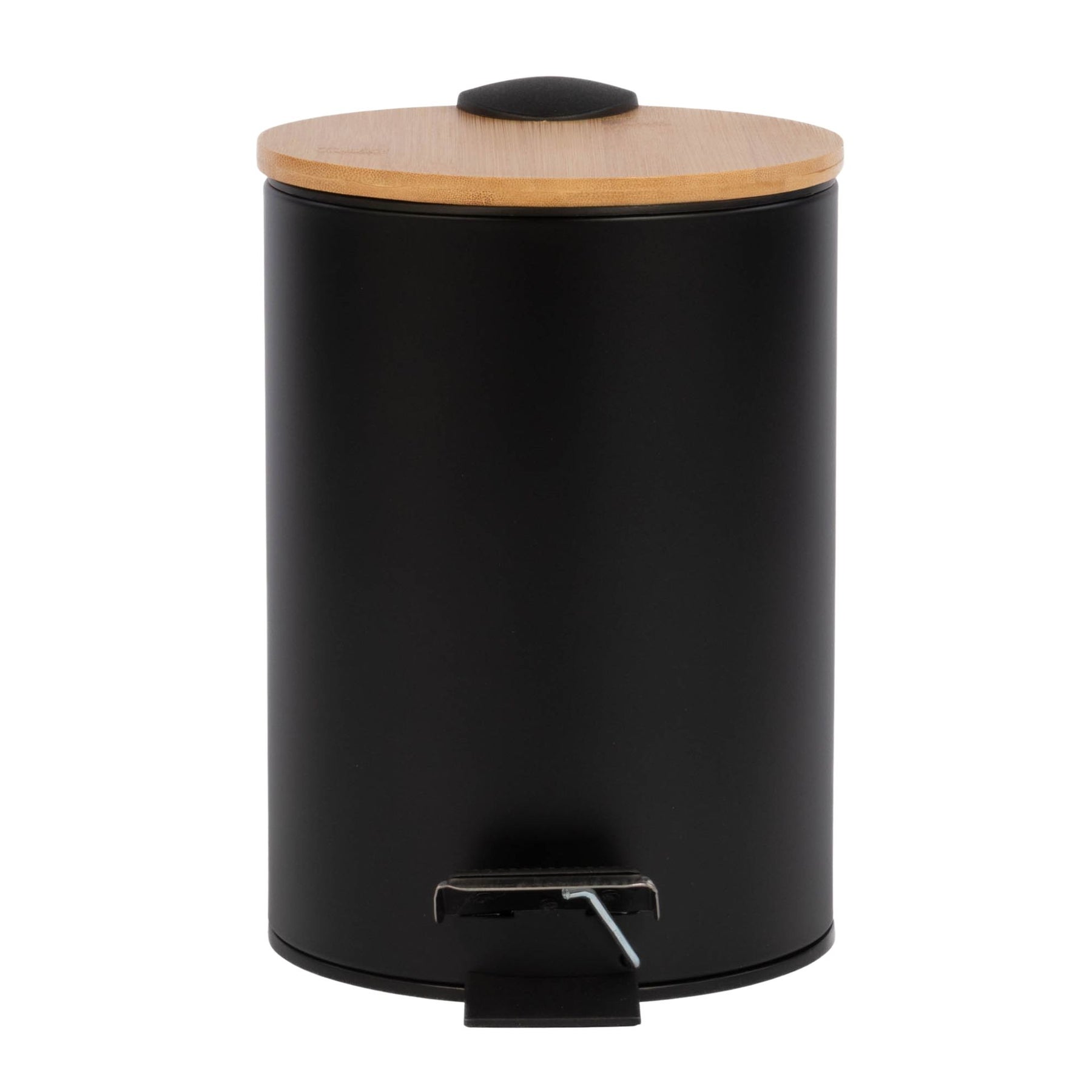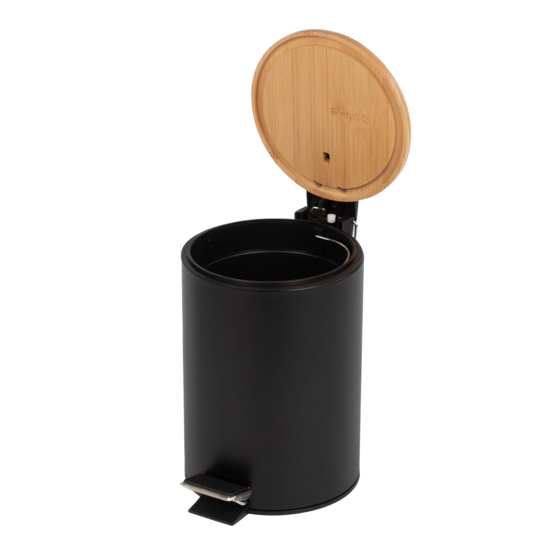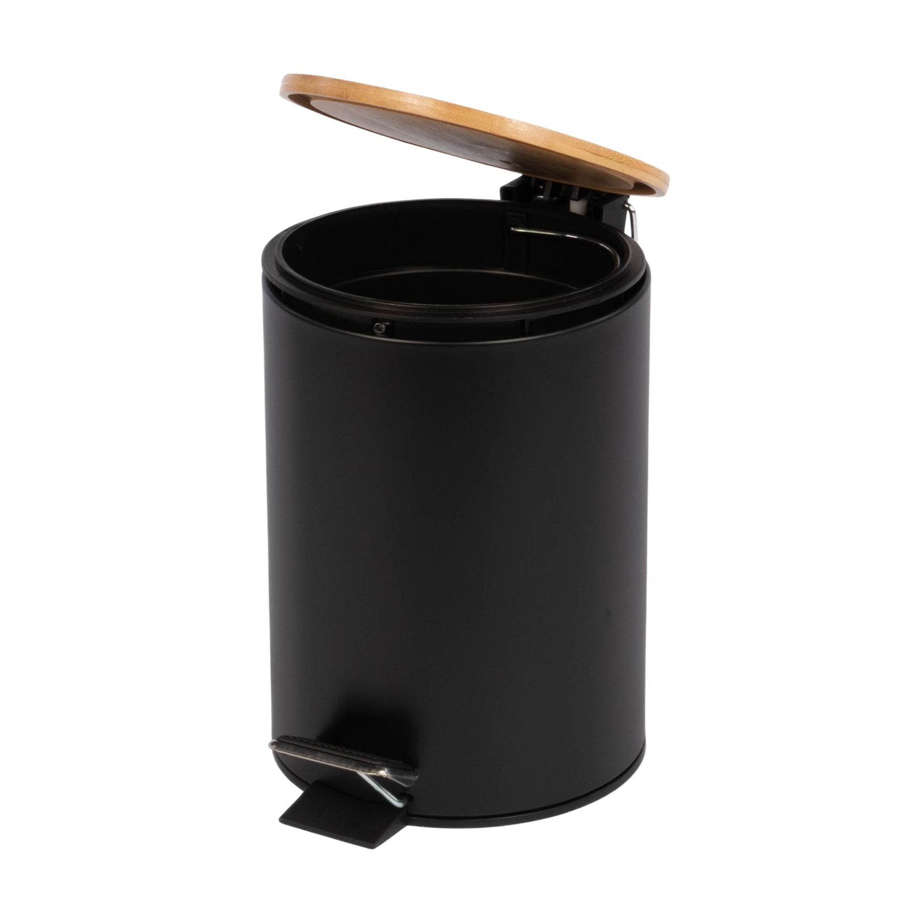 Kosz łazienkowy z pedałem czarny z bambusowym detalem 3l - elegancki design i praktyczne otwieranie dla nowoczesnych wnętrz