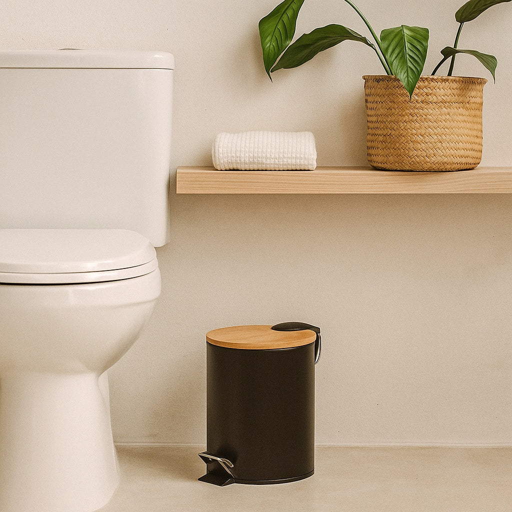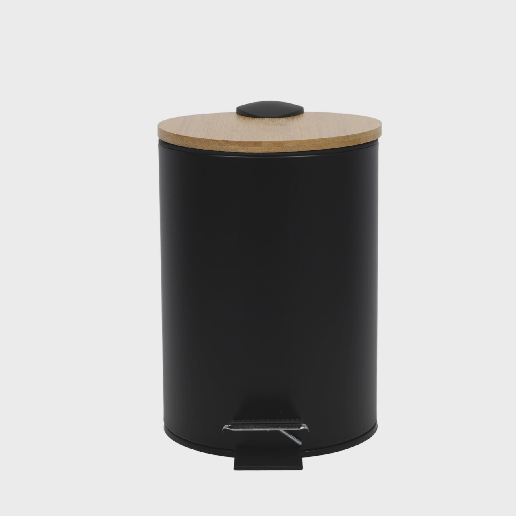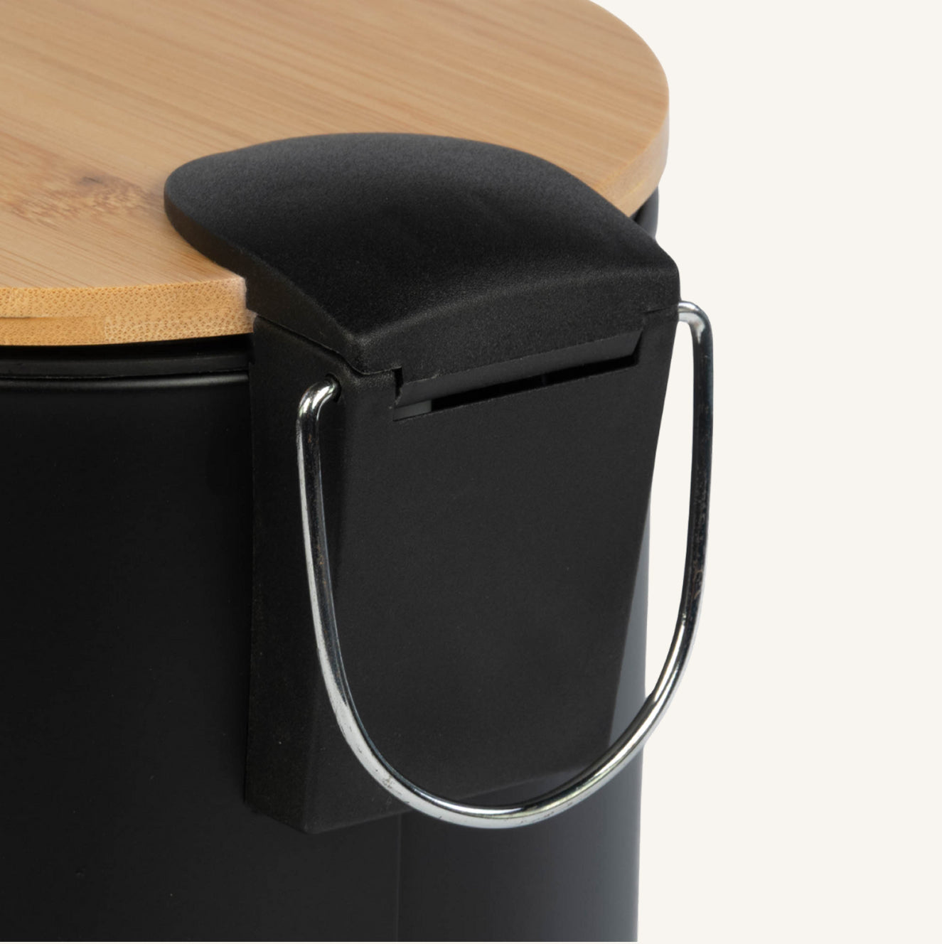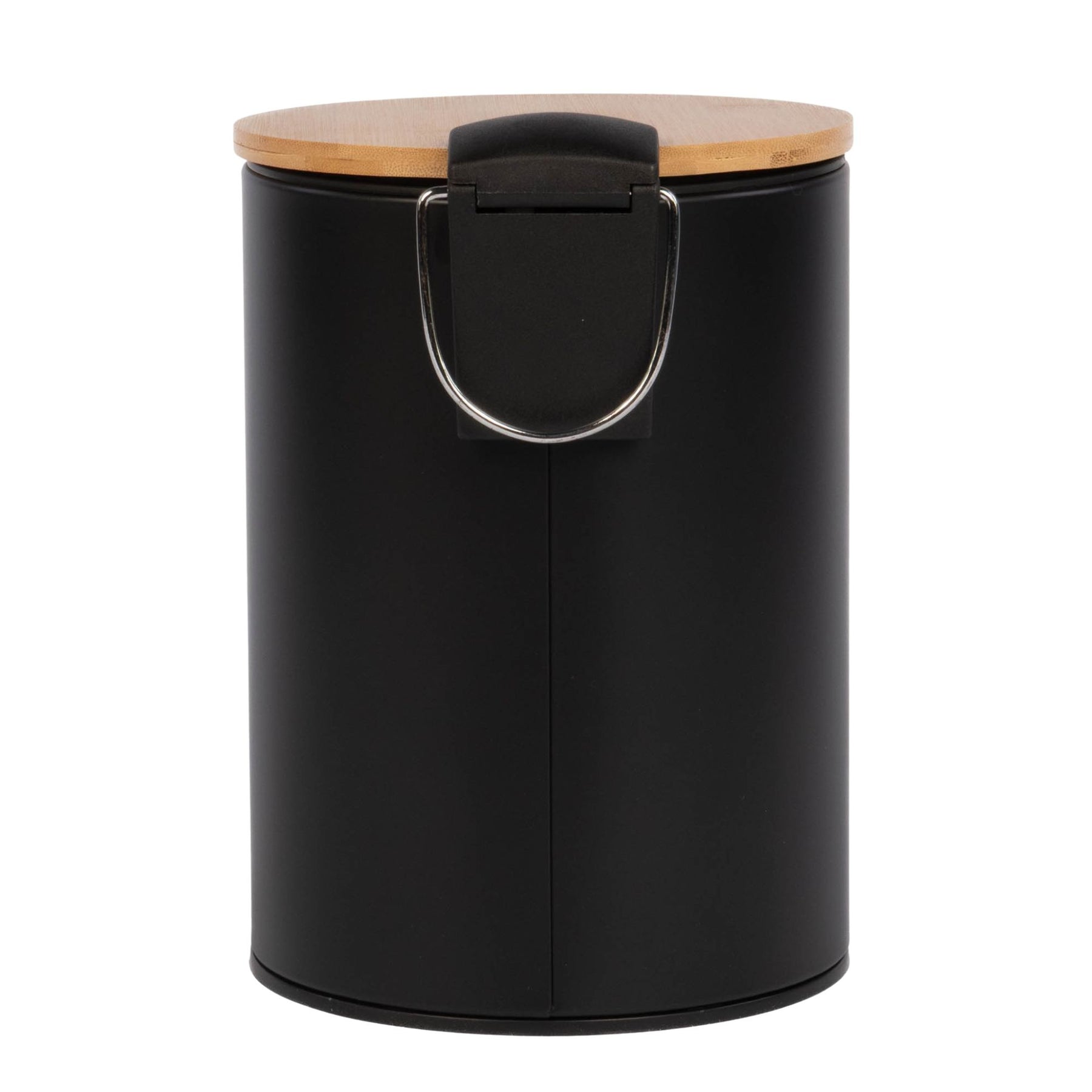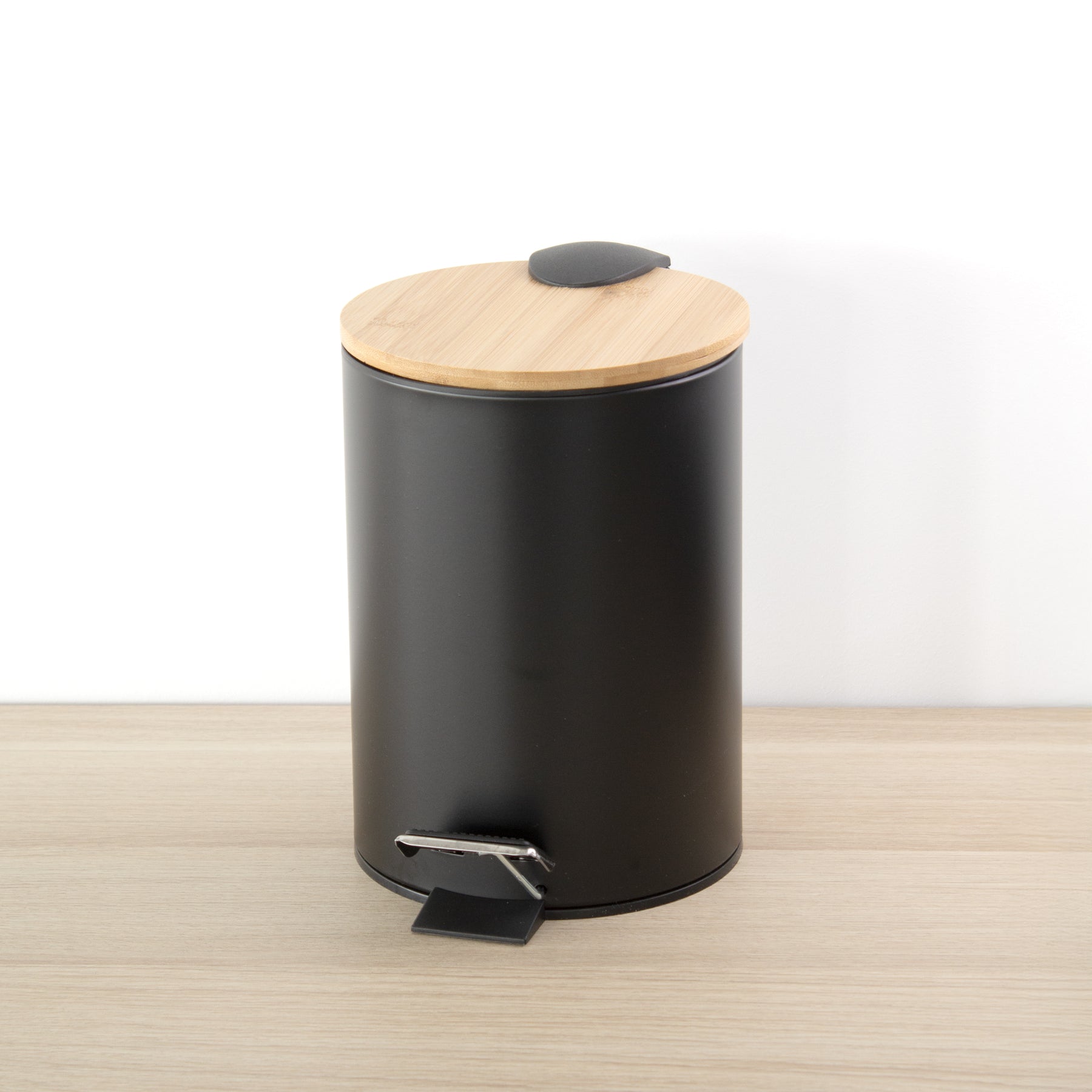 Kosz łazienkowy z pedałem czarny z bambusowym detalem 3l - elegancki design i praktyczne otwieranie dla nowoczesnych wnętrz