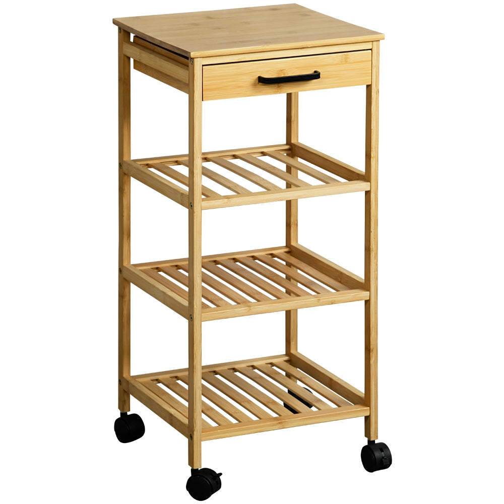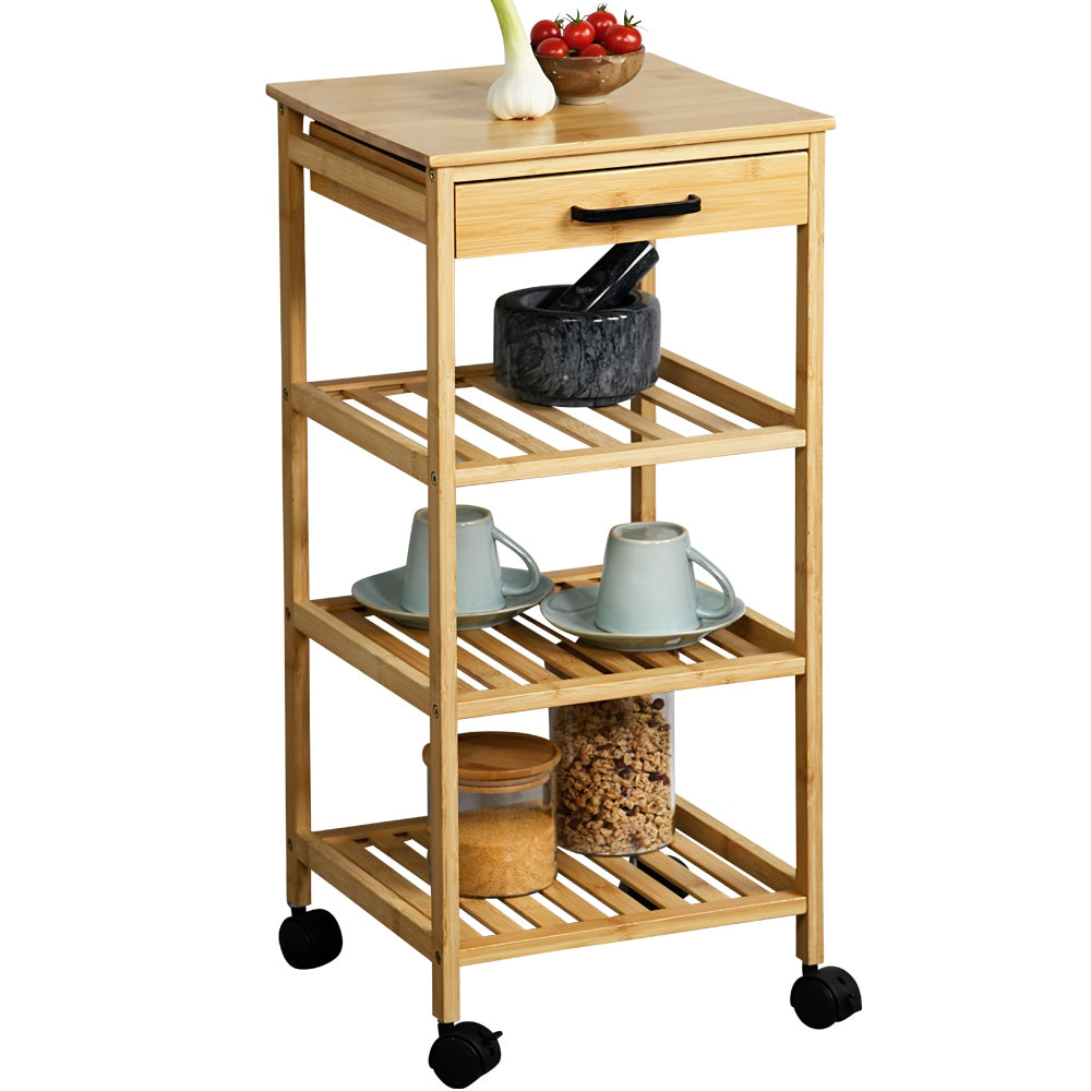 Wózek kuchenny bambusowy z kółkami i półkami marki KESPER - funkcjonalny i mobilny mebel do każdej kuchni