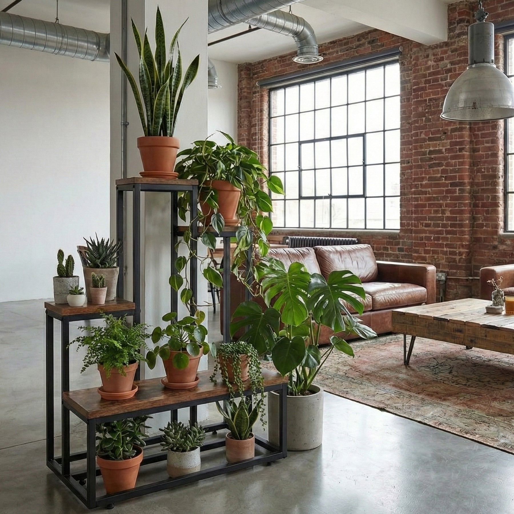 - Zróżnicowana ekspozycja: Różne poziomy półek pozwalają na ciekawą aranżację roślin o odmiennych gabarytach - od zwisających pnączy po bardziej rozłożyste donice.