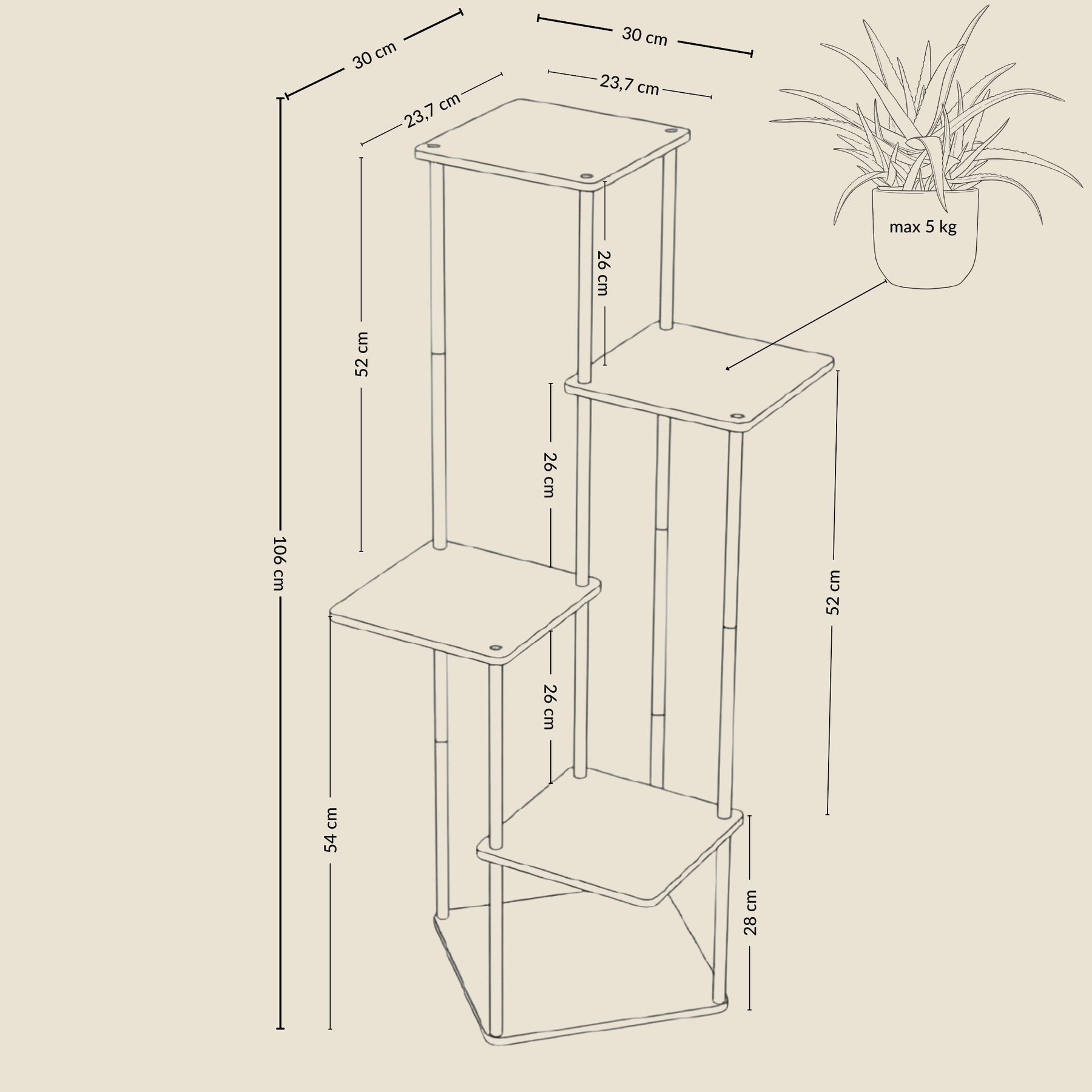 - Wymiary całkowite (dł. x gł. x wys.): 30 x 30 x 106 cm