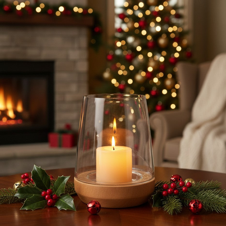 Lampion z drewnianą podstawką do tealightów - elegancki i ekologiczny dekor wnętrz, który wpasuje się w każdą aranżację