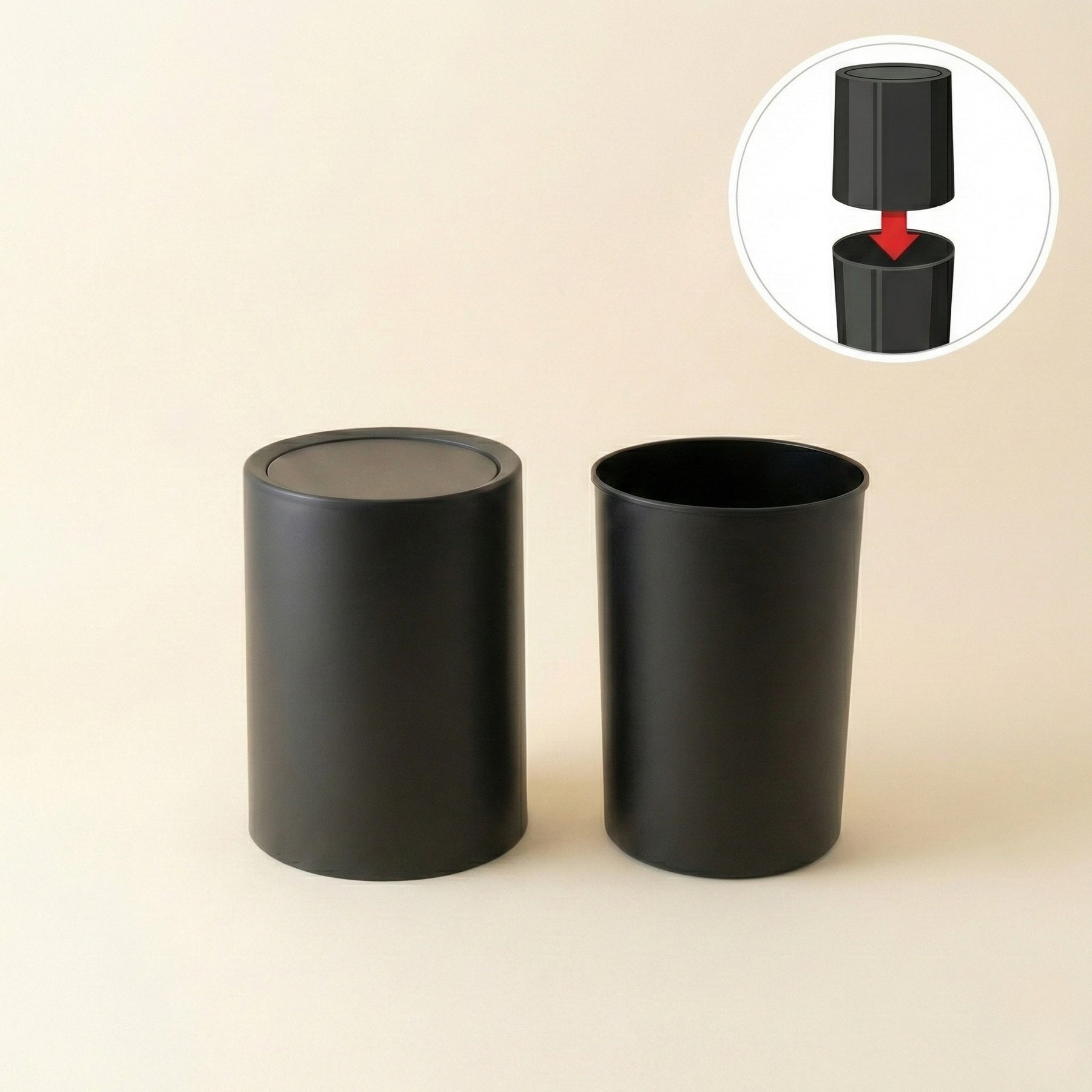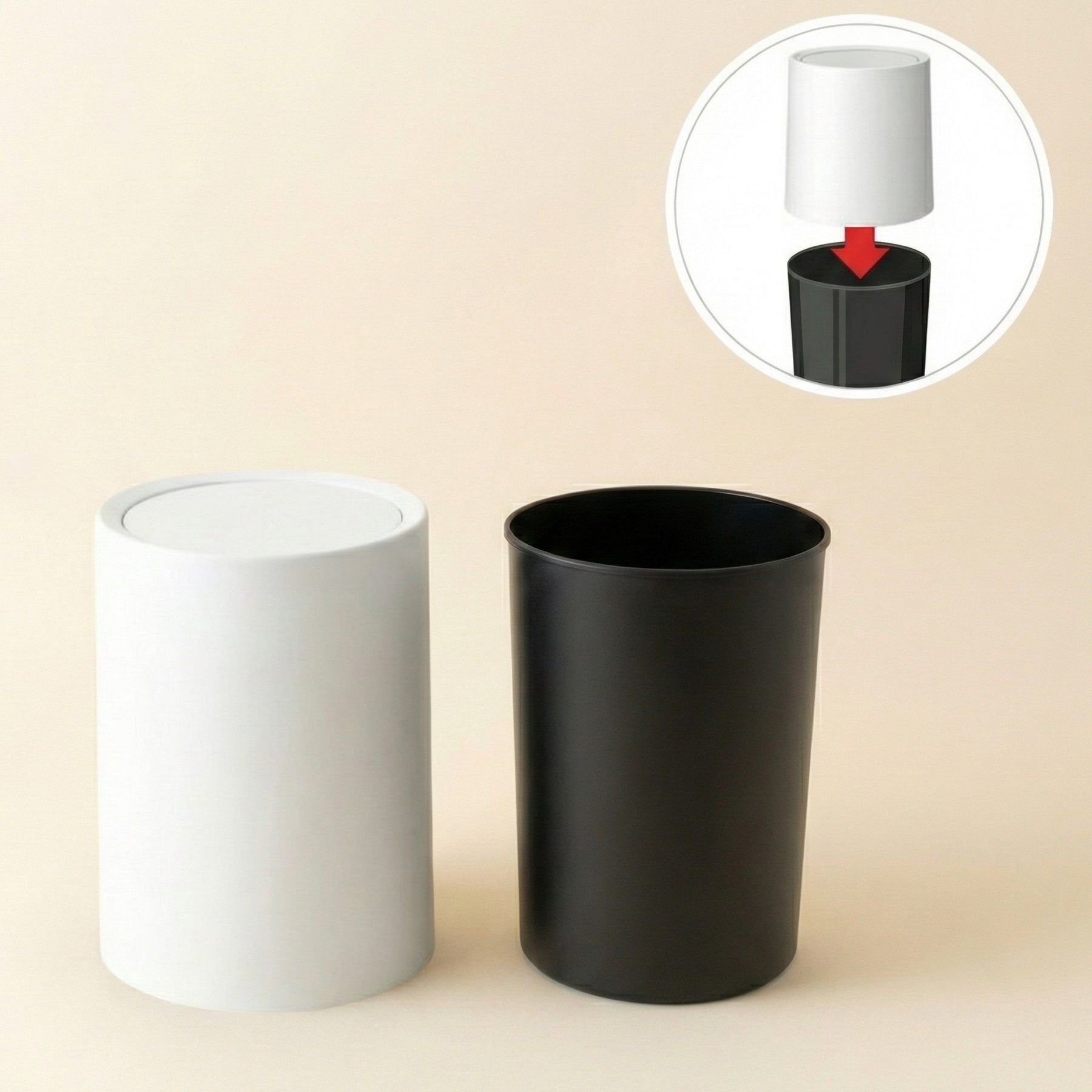 - Dwuczęściowa konstrukcja: Kosz składa się z pojemnika bazowego oraz nakładanej górnej części z pokrywą. Ułatwia to opróżnianie kosza i pozwala estetycznie ukryć krawędzie worka na śmieci.