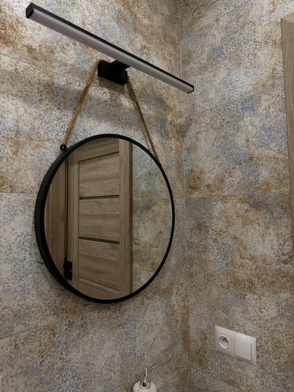 Okrągłe lustro w metalowej ramie i z jutowym uchwytem Ø 50 cm – ciekawa dekoracja, która wprowadzi do wnętrza odrobinę głębi