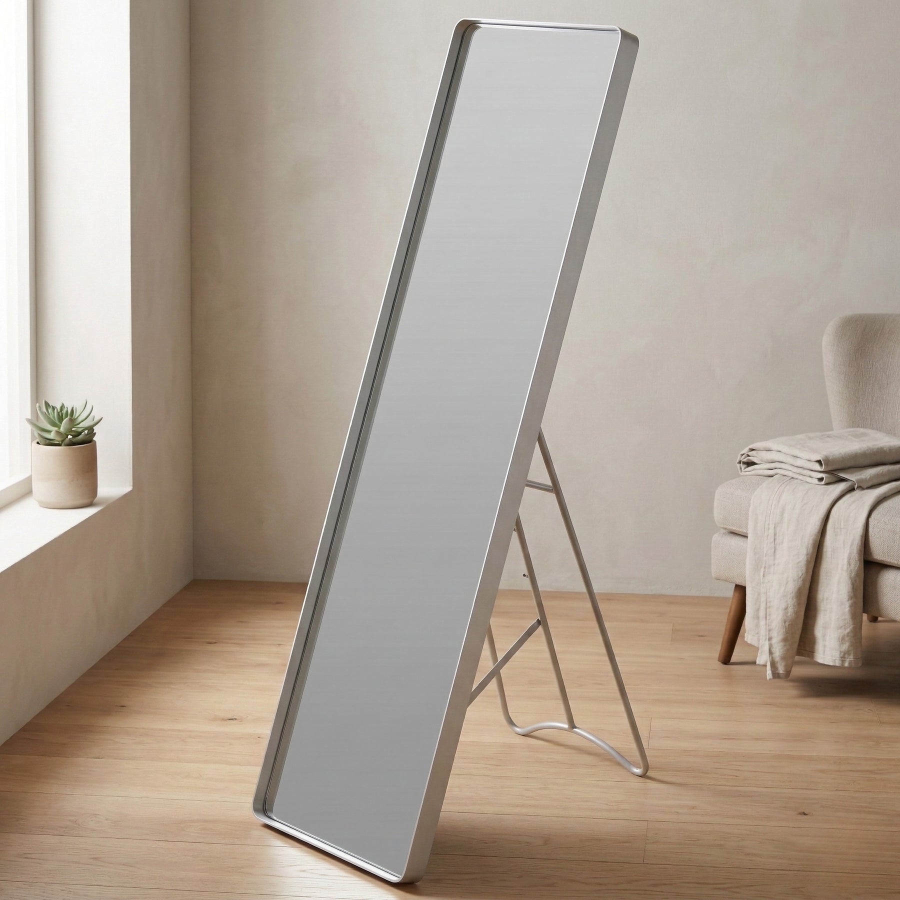 - Łatwy montaż: Lustro jest wolnostojące, co oznacza, że nie wymaga skomplikowanego montażu ani wiercenia otworów w ścianach. Możesz je szybko ustawić w dowolnym miejscu, gdzie potrzebujesz dodatkowego odbicia.