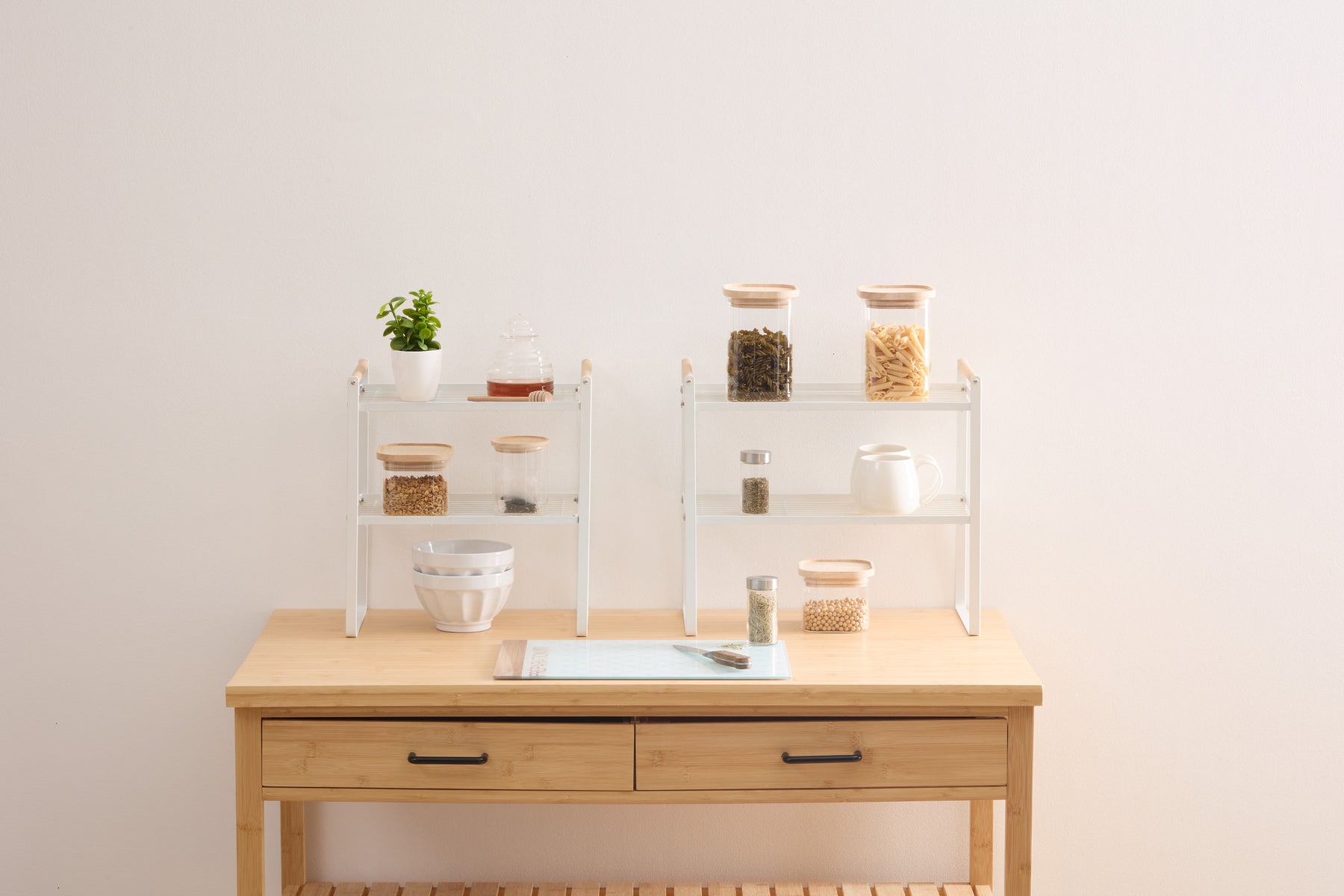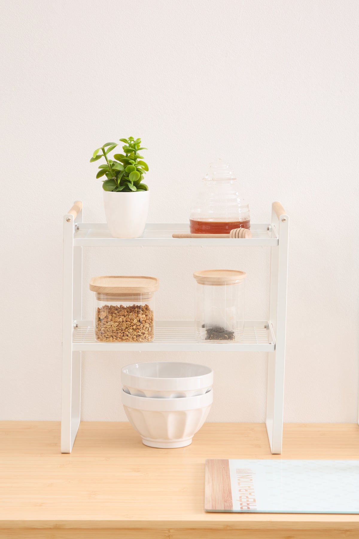 - Praktyczna konstrukcja: Metalowa półka na blat kuchenny BALM o wymiarach 33 x 21 x 37,5 cm to idealne rozwiązanie do organizacji przestrzeni w Twojej kuchni. Dzięki dwóm poziomom zyskujesz dodatkowe miejsce na przechowywanie niezbędnych akcesoriów.