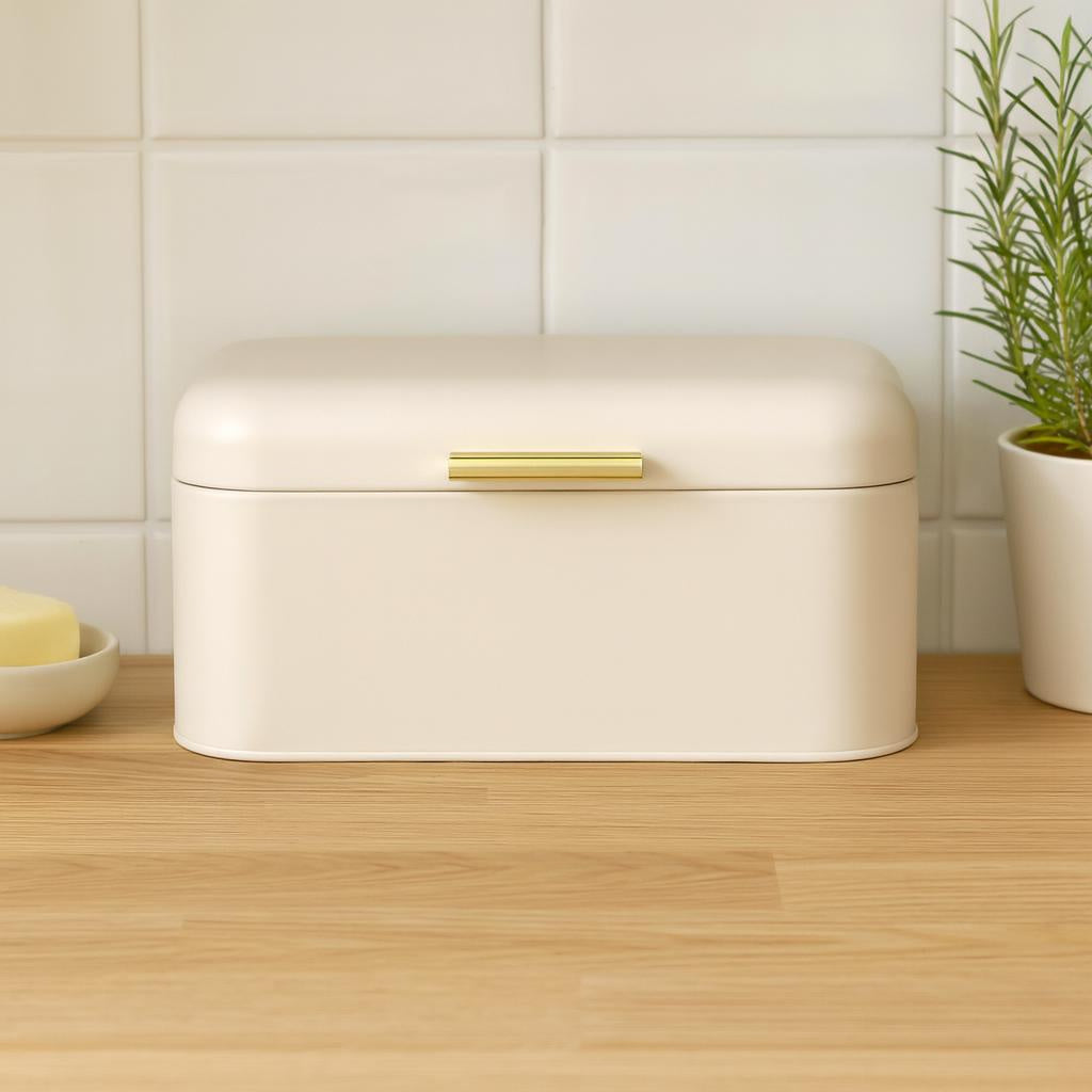 Metalowy chlebak do przechowywania pieczywa z szczelnym wieczkiem - idealne miejsce do przechowywania chleba, chroniące przed wysychaniem
