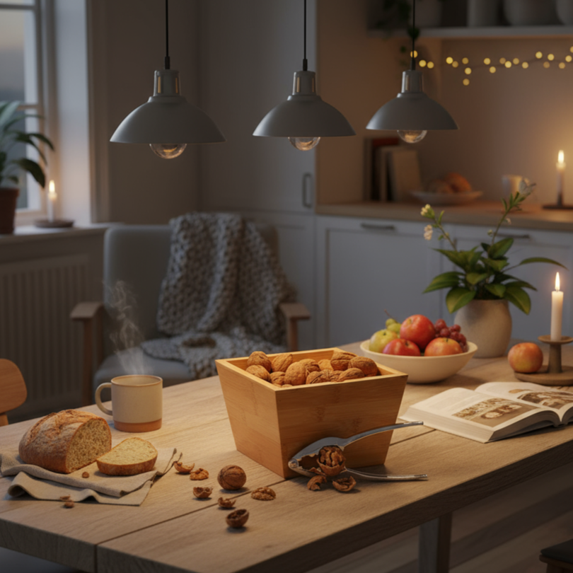 Dziadek do orzechów z bambusową miską - funkcjonalny zestaw do łupania i przechowywania orzechów