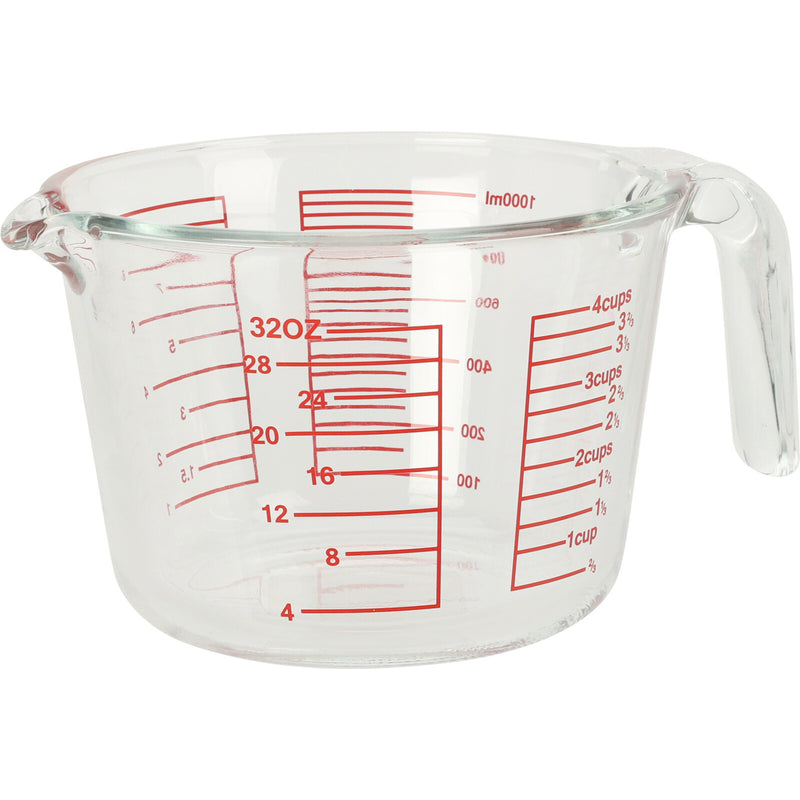 Szklana miarka kuchenna 1 litr z ergonomicznym uchwytem - idealne narzędzie do precyzyjnego odmierzania składników w kuchni