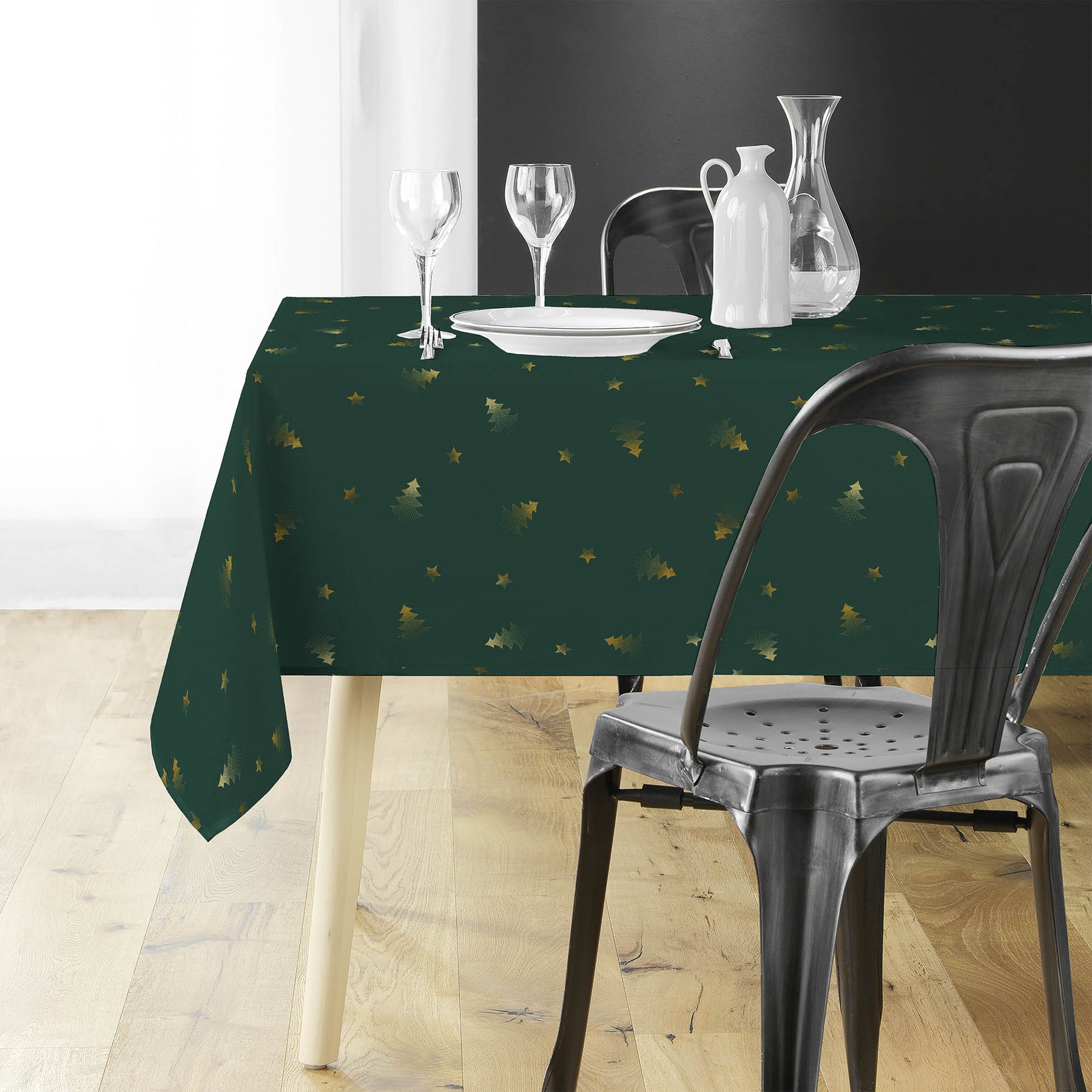 Plamoodporny obrus elegancki zielony z złotym wzorem - trwały i łatwy w pielęgnacji, idealny na wyjątkowe okazje