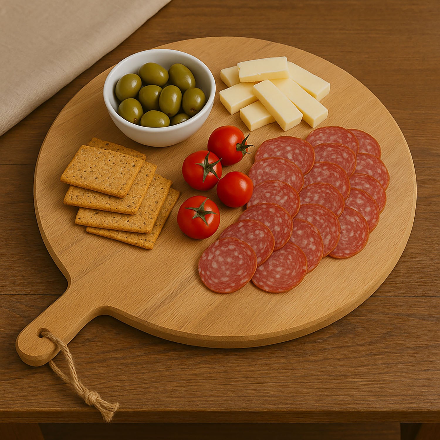 - Praktyczne akcesoria: Deska wyposażona jest w antypoślizgowe nóżki, które zapewniają stabilność podczas krojenia. Dodatkowo, naturalny sznurek umożliwia łatwe przechowywanie i eksponowanie deski w kuchni.