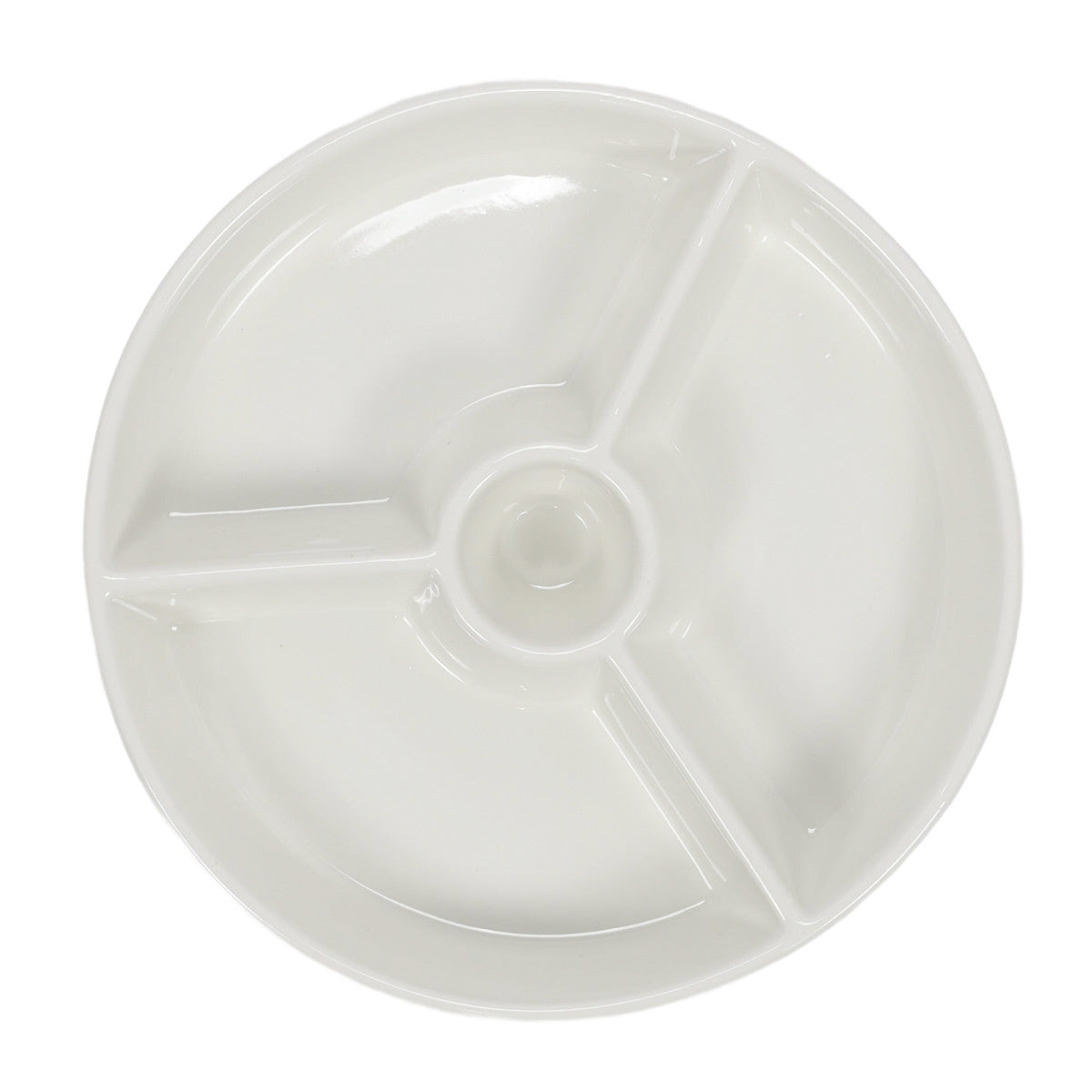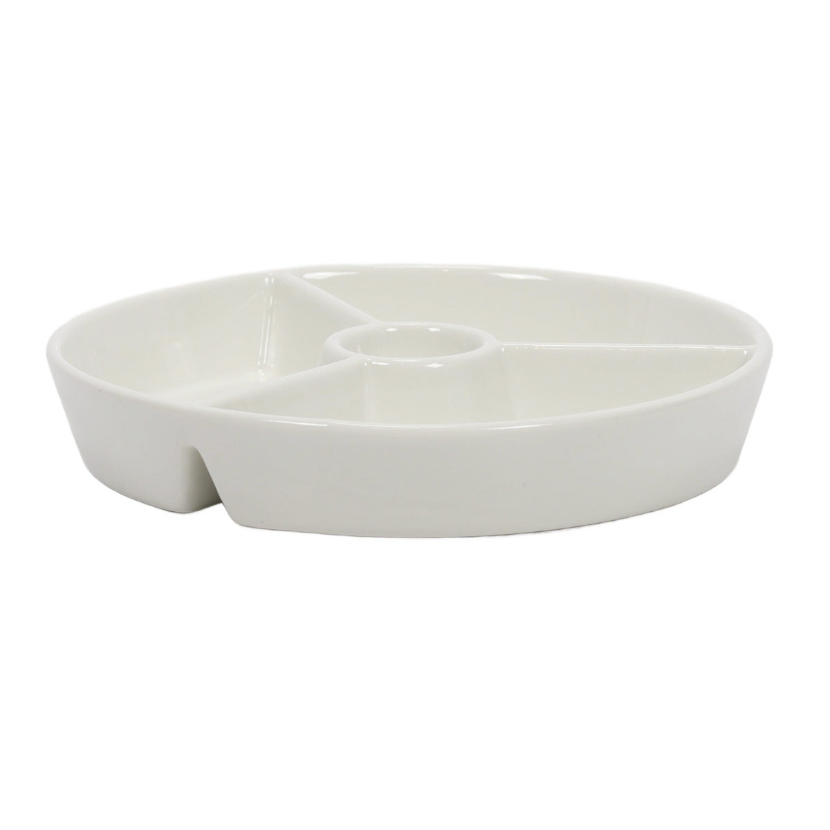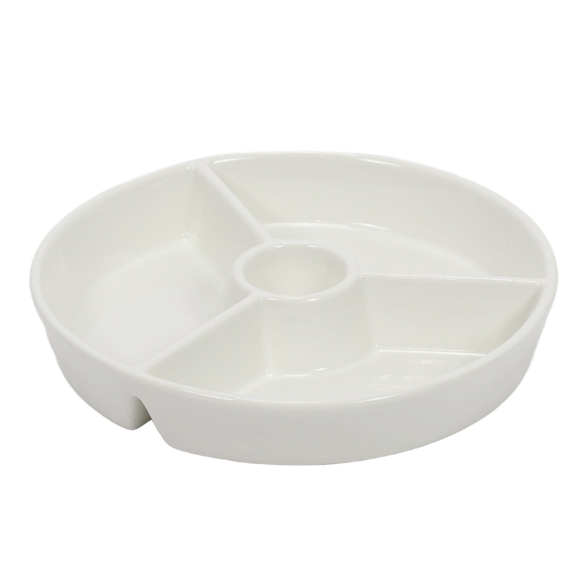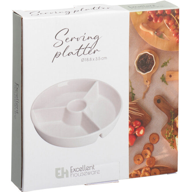 Okrągły półmisek do przekąsek z przegródkami i miejscem na dip - idealne rozwiązanie na każdą imprezę dzięki praktycznemu designowi