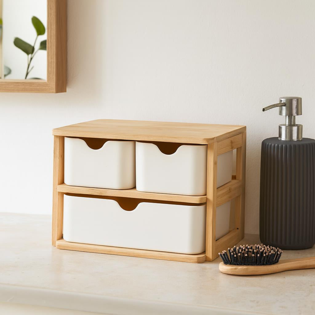 Organizer bambusowy z szufladami do biura i domu - praktyczne rozwiązanie do uporządkowania przestrzeni roboczej