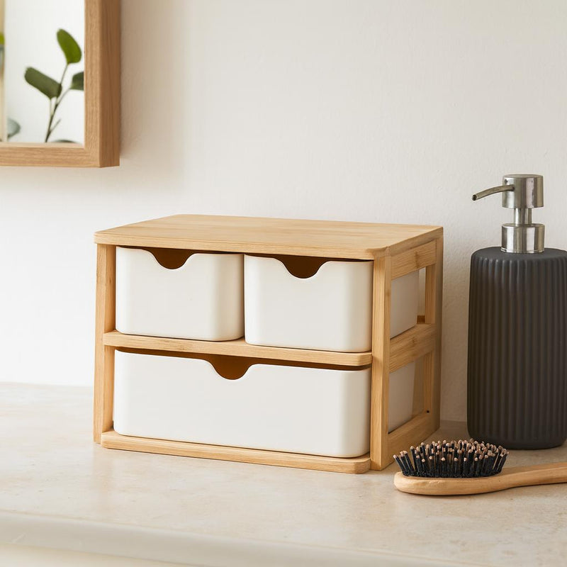 - Praktyczne rozwiązanie do przechowywania: Organizer bambusowy z 3 szufladami LADEN to idealny sposób na uporządkowanie przestrzeni roboczej. Dzięki kompaktowym wymiarom 19,5 x 15 x 15 cm zmieści się na każdym biurku czy półce.