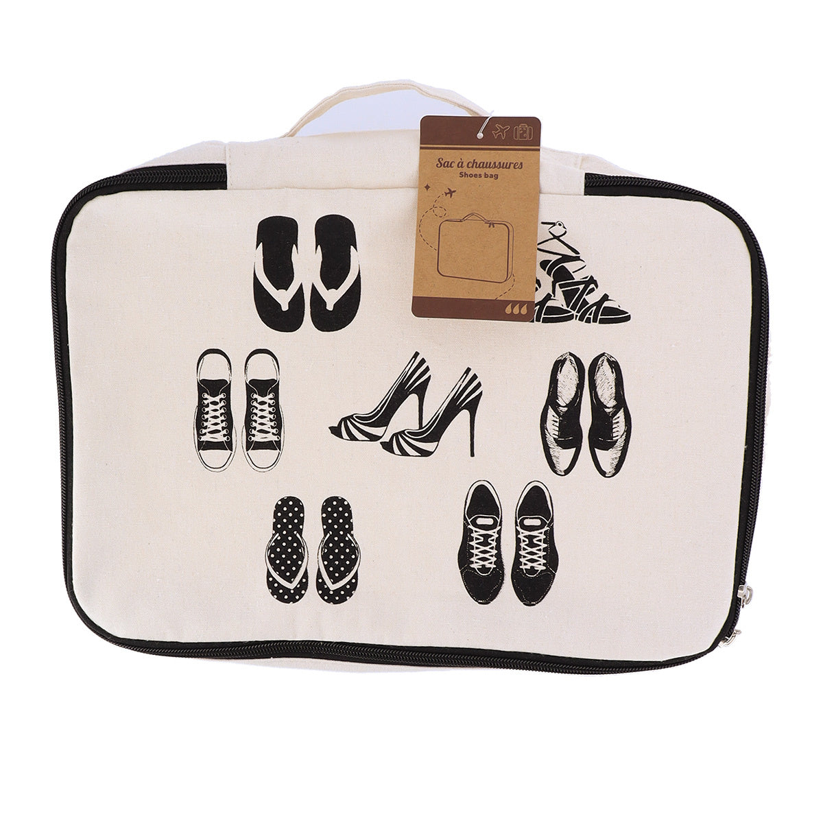 - Wygodne zamknięcie: Organizer wyposażony jest w zamek błyskawiczny, który zapewnia bezpieczeństwo przechowywanych butów. Dzięki temu możesz mieć pewność, że Twoje obuwie nie wypadnie podczas transportu.