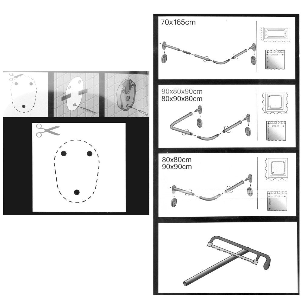 Prezentowany kątownik prysznicowy został wykonany z lekkiego aluminium w modnym kolorze czarnym. Dzięki swojej budowie może być ustawiany w dowolnej kombinacji, co znacznie zwiększa jego szanse na montaż w miejscach niestandardowych - wąskich, ciasnych lub otwartych. Z jego pomocą można tworzyć różne warianty długości, np. 70 x 165 cm, 90 x 80 x 90 cm, 80 x 90 x 80 cm, 80 x 80 cm lub 90 x 90 cm. Ponadto drążek można również przyciąć, aby dostosować go do miejsca, w którym ma się znajdować.