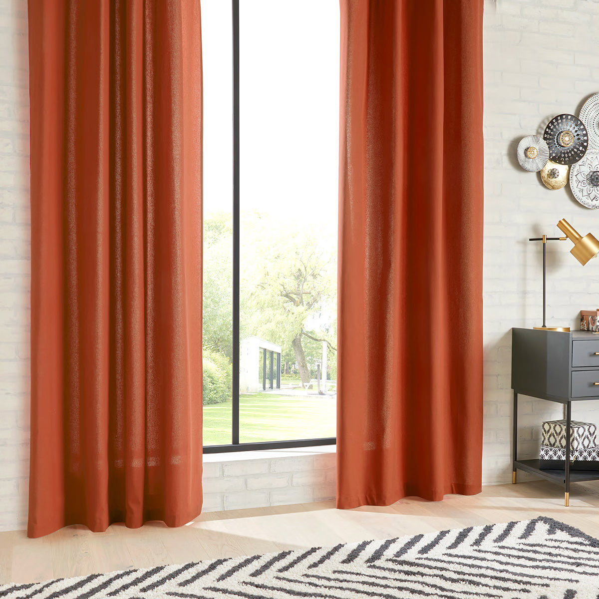 - Różnorodność kolorów: Nasza zasłona ANJALI dostępna jest w szerokiej palecie kolorów, w tym: szarym, brązowym, żółtym, zielonym, ciemnoszarym, czerwonym, jasnobrązowym, khaki i taupe. Wybierz ten, który najbardziej pasuje do Twojego wnętrza lub skomponuj zestaw, który będzie idealnie współgrał z aranżacją Twojego pomieszczenia.