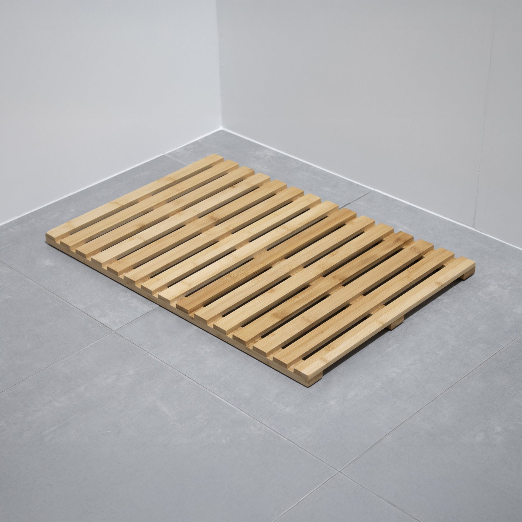 - Kompaktowy rozmiar: Wymiary 60 × 40 cm i wysokość 2,2 cm – odpowiedni rozmiar do ustawienia przed prysznicem, wanną lub umywalką.