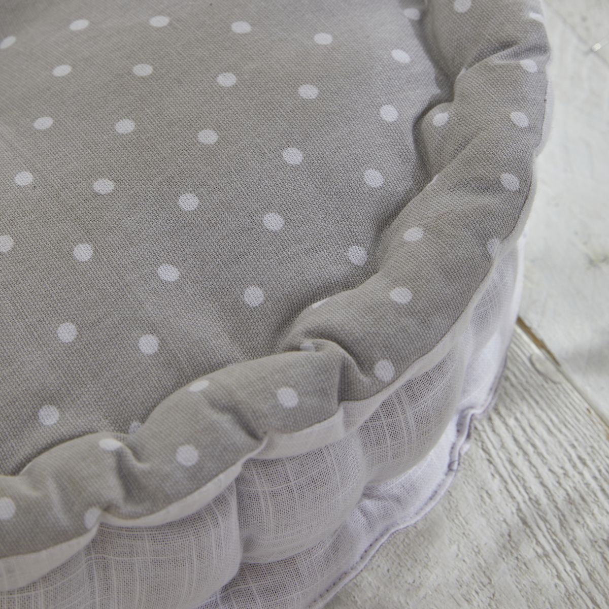 Poduszka do siedzenia na podłodze CONSTANCE 40 cm bawełnowa z wzorem w kropki - zapewnia doskonałe wsparcie i komfort podczas relaksu