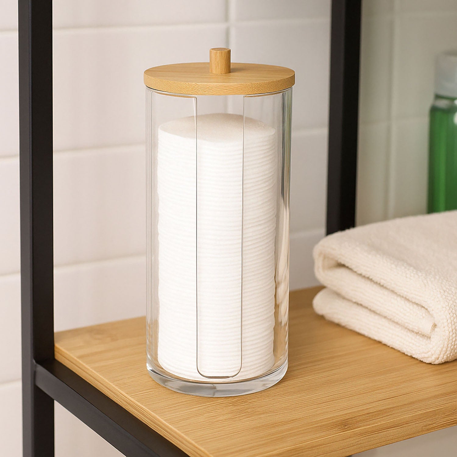 Pojemnik na waciki kosmetyczne z bambusową pokrywką to produkt dopasowany do potrzeb Twojej łazienki. Skąd to wiemy? Niezależnie, czy mieszkasz w kamienicy, czy niewielkim mieszkaniu w bloku lub w apartamencie, z pewnością, że cenisz uporządkowaną łazienkę, w której każdy produkt ma swoje miejsce. Nawet jeśli jest to taka drobinka jak płatki kosmetyczne. Przekładając je z plastikowego opakowania do specjalnego pojemnika, uchronisz je przed zabrudzeniami, kurzem oraz wysoką temperaturą panująca w łazience.