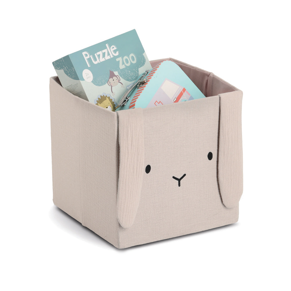 - Praktyczne rozwiązanie do przechowywania: Pojemnik na zabawki muślinowy COZY KIDS z uszkami o wymiarach 28 x 28 x 28 cm to idealne miejsce na zabawki, książki czy inne drobiazgi, które pomogą utrzymać porządek w pokoju dziecięcym.