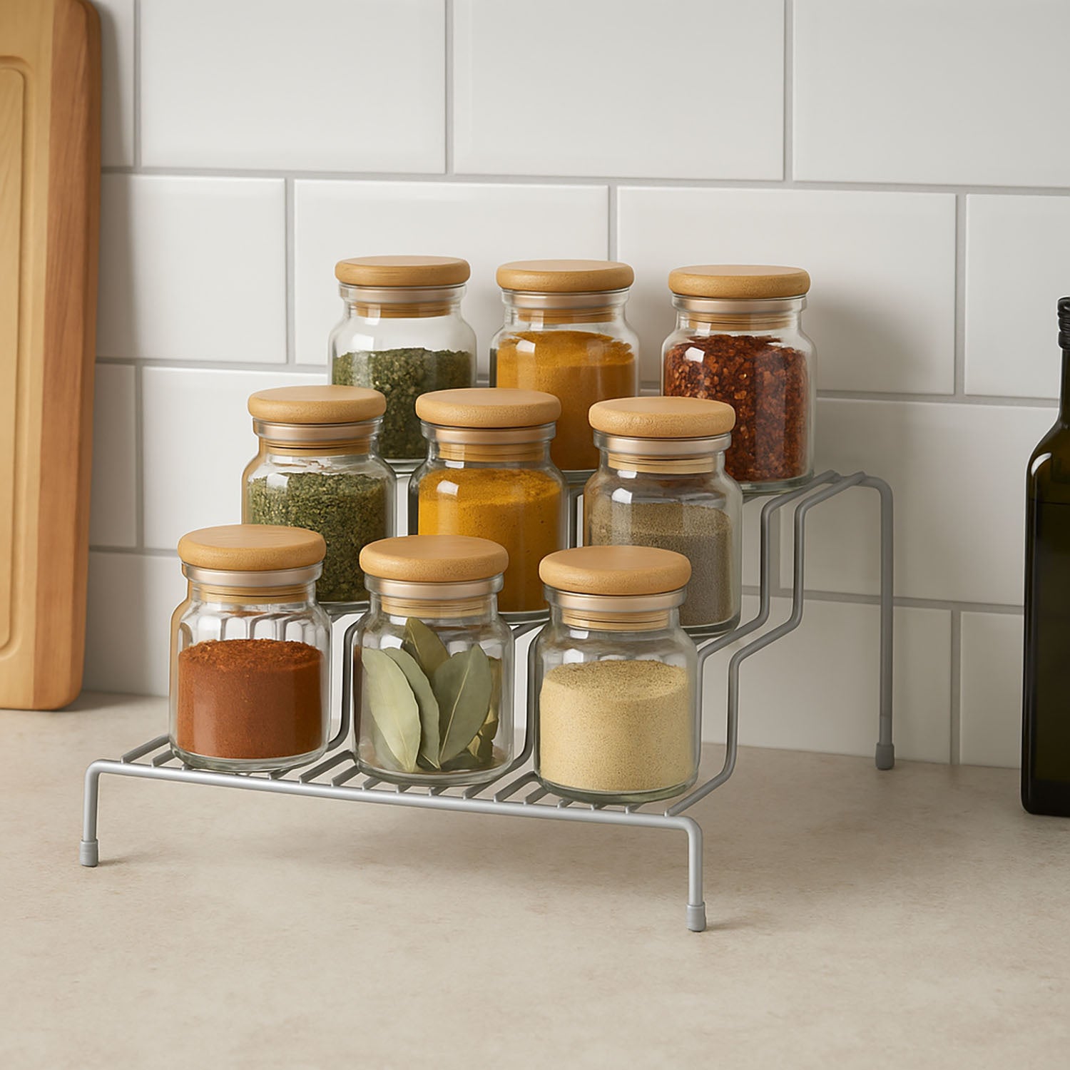- Praktyczna organizacja przestrzeni: Półka na blat kuchenny o wymiarach 26 x 25 x 11,5 cm to idealne rozwiązanie do efektywnego zagospodarowania miejsca w Twojej kuchni. Dzięki trzem poziomom zyskujesz dodatkową przestrzeń na przyprawy, akcesoria kuchenne czy inne drobiazgi.