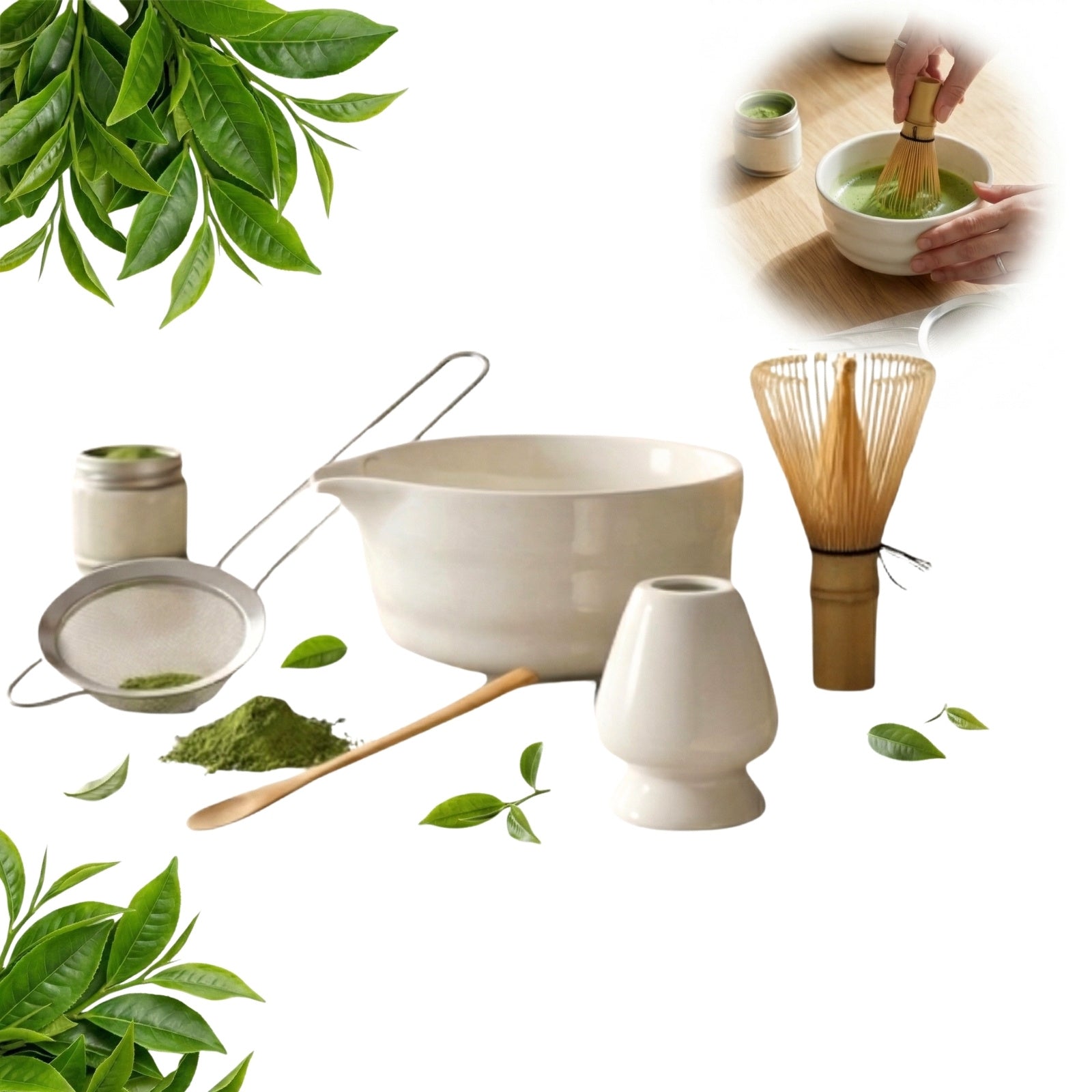 Zestaw do herbaty matcha z porcelany i bambusa - idealny zestaw do przygotowania autentycznej herbaty matcha w domowym zaciszu